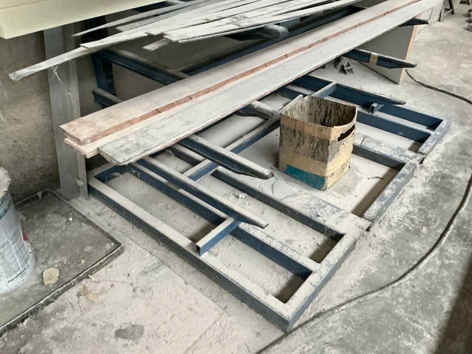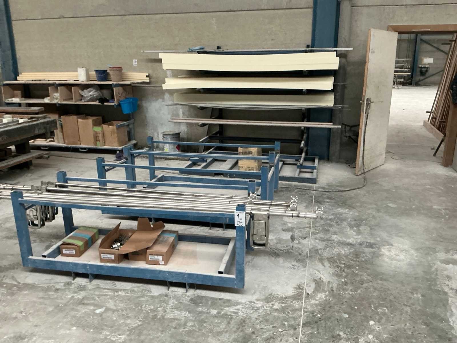 Inclusief kleine Draagarmstelling met inhoud. Voorzien van heftruck kokers. Afmeting l: 610mm Afmeting b: 1730mm Afmeting h: 680mm Staal: true