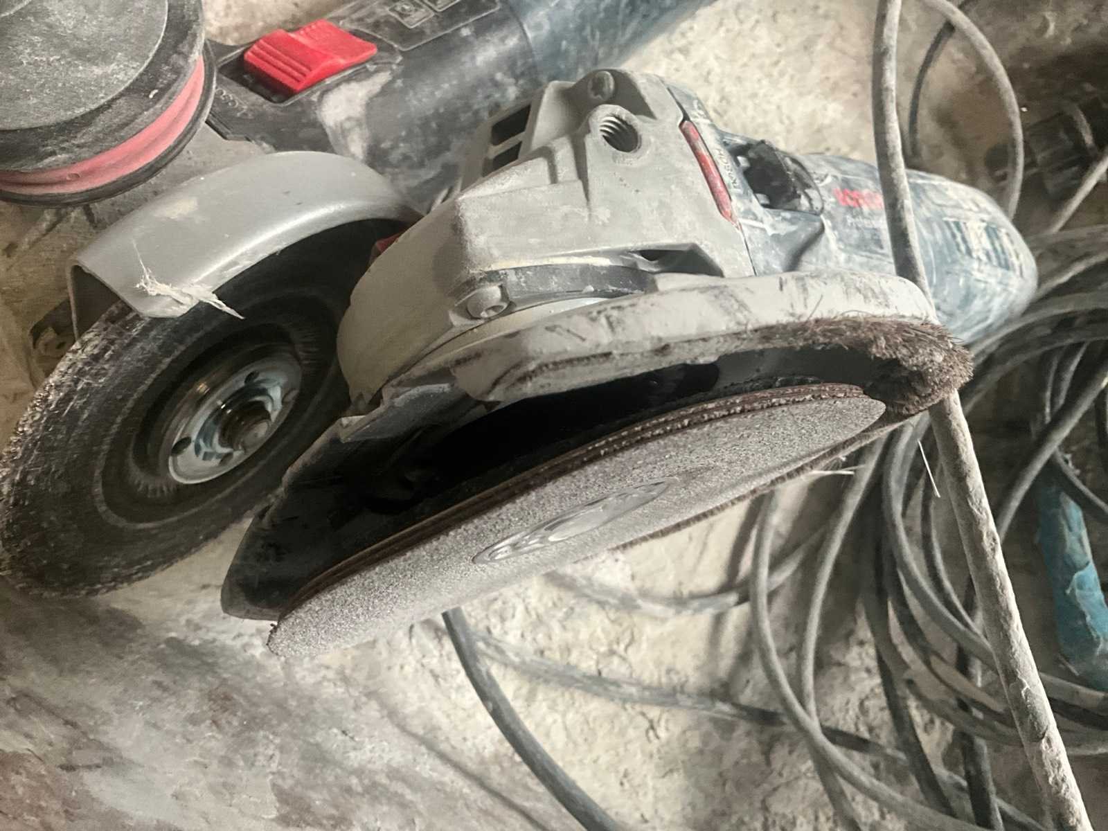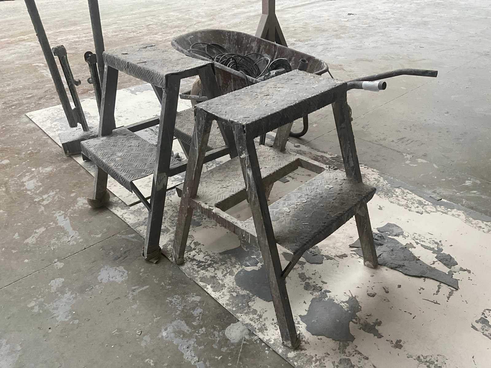Bestaande uit 2x alu opstap, 2x domme kracht, kruiwagen inhoudende 2x haakse slijptol Bosch