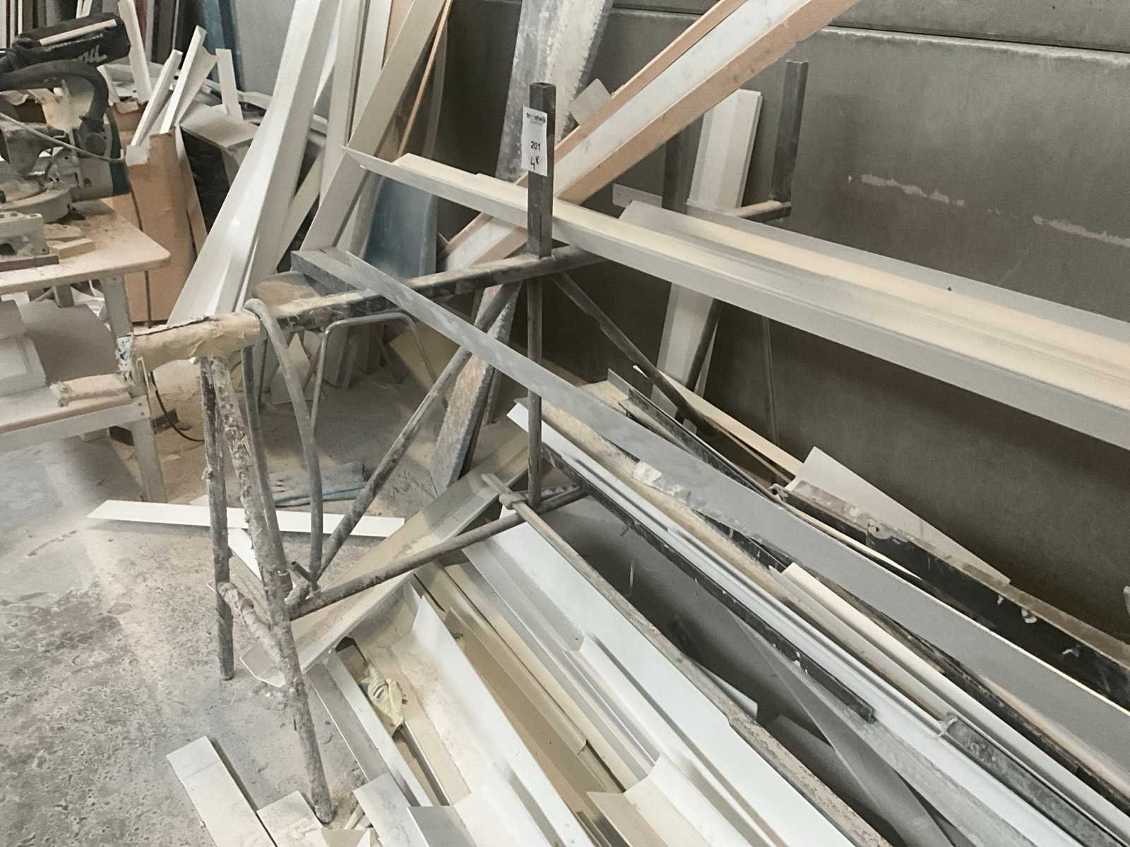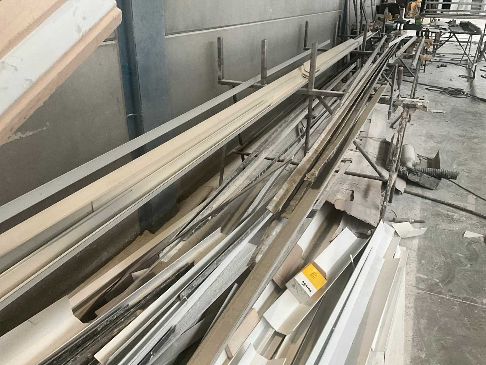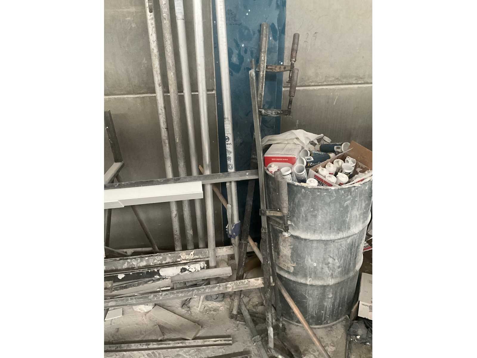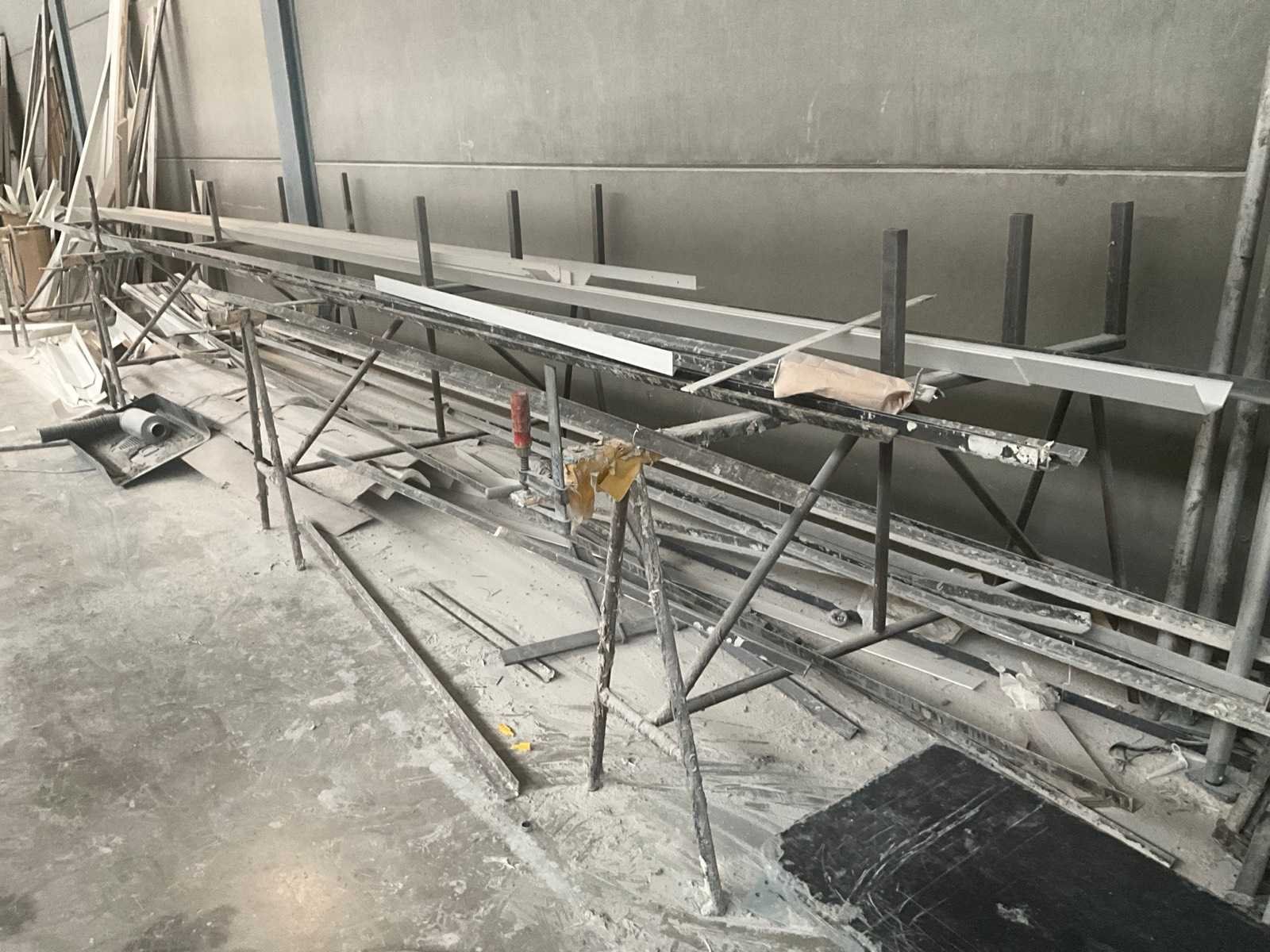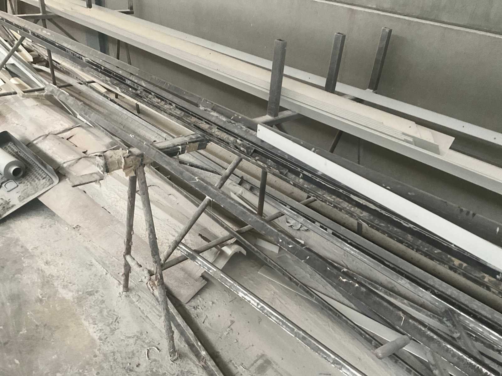 Compleet met enige lijmklemmen, montagehulpen, kunststof en metaalresten waaronder met lengte circa 6m Lengte: 155cm Breedte: 45cm Hoogte: 110cm