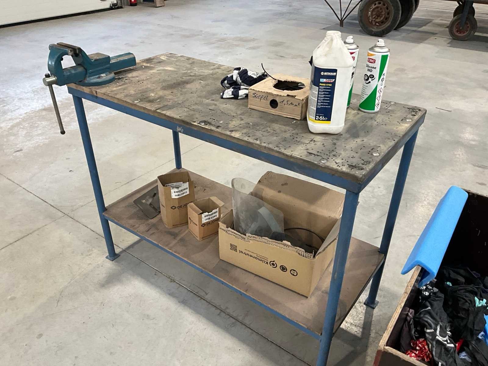 +3x mobiele houten kist 800x470 mm, +1x werktafel 560x1250x920 mm, + kist met oude bekabeling, alles Met inhoud Staal: true