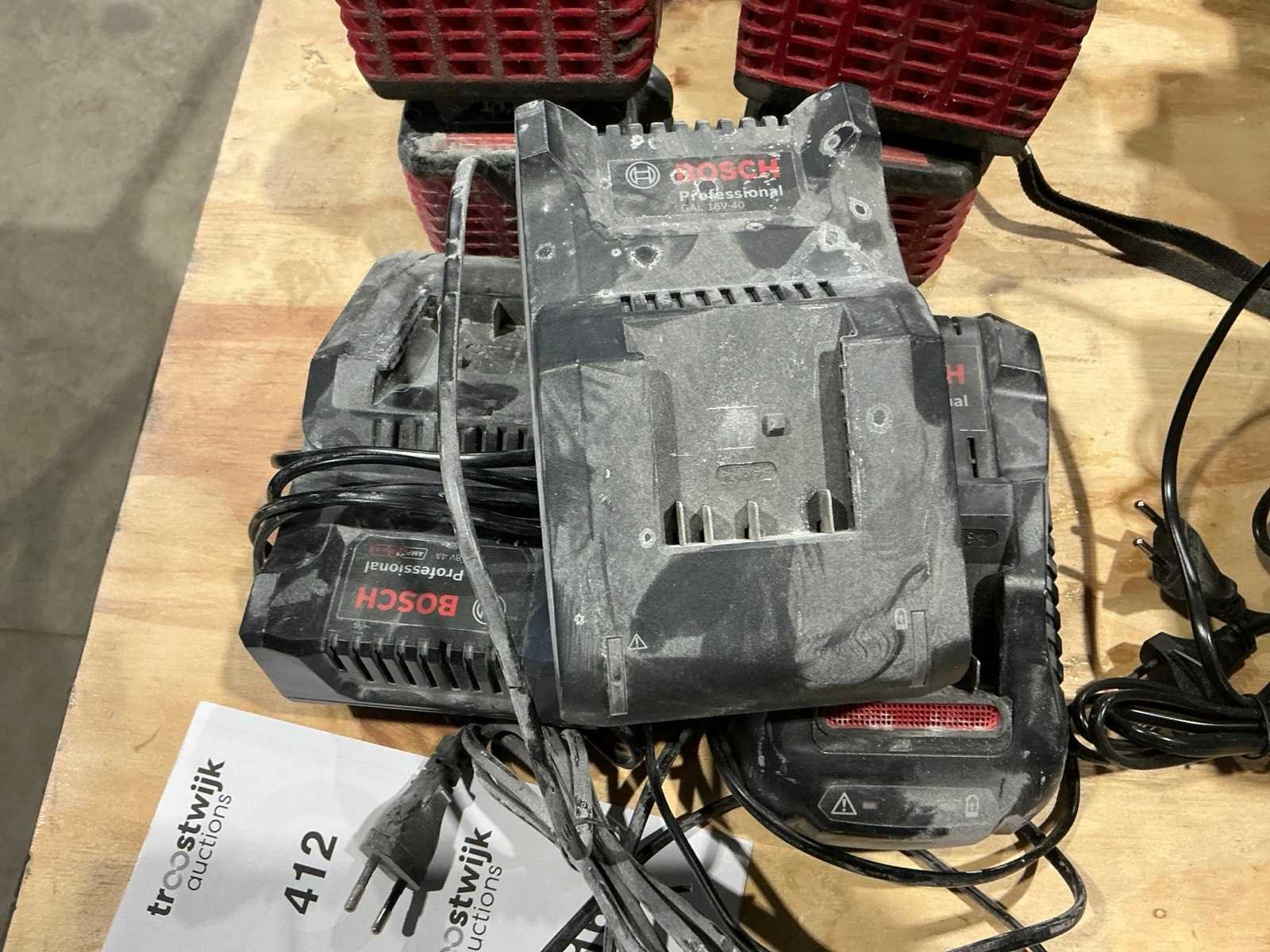 Waaronder types: GSR 18V-55, GSR 14,4-LT, GDR 14,4-LT en GDX 18V-EC. Allen voorzien van accu. Compleet met 3x acculader. Merk: Bosch Accu lader: true