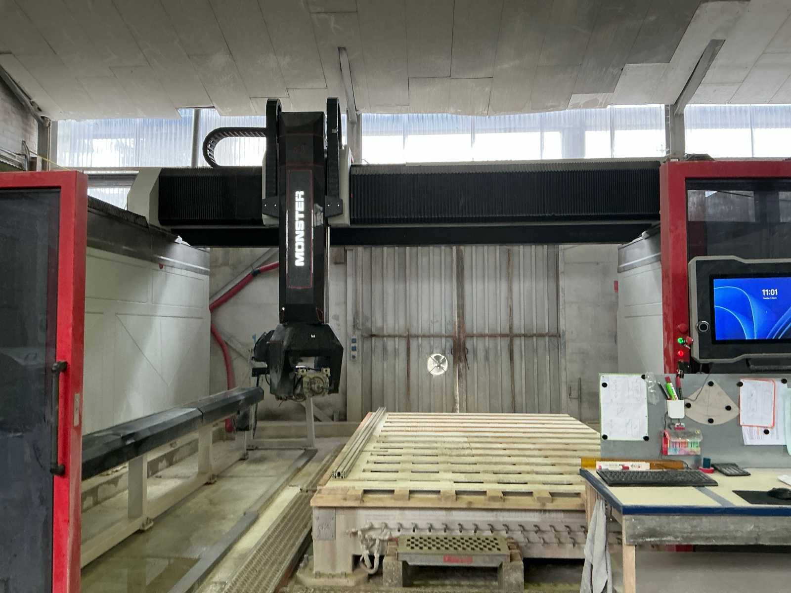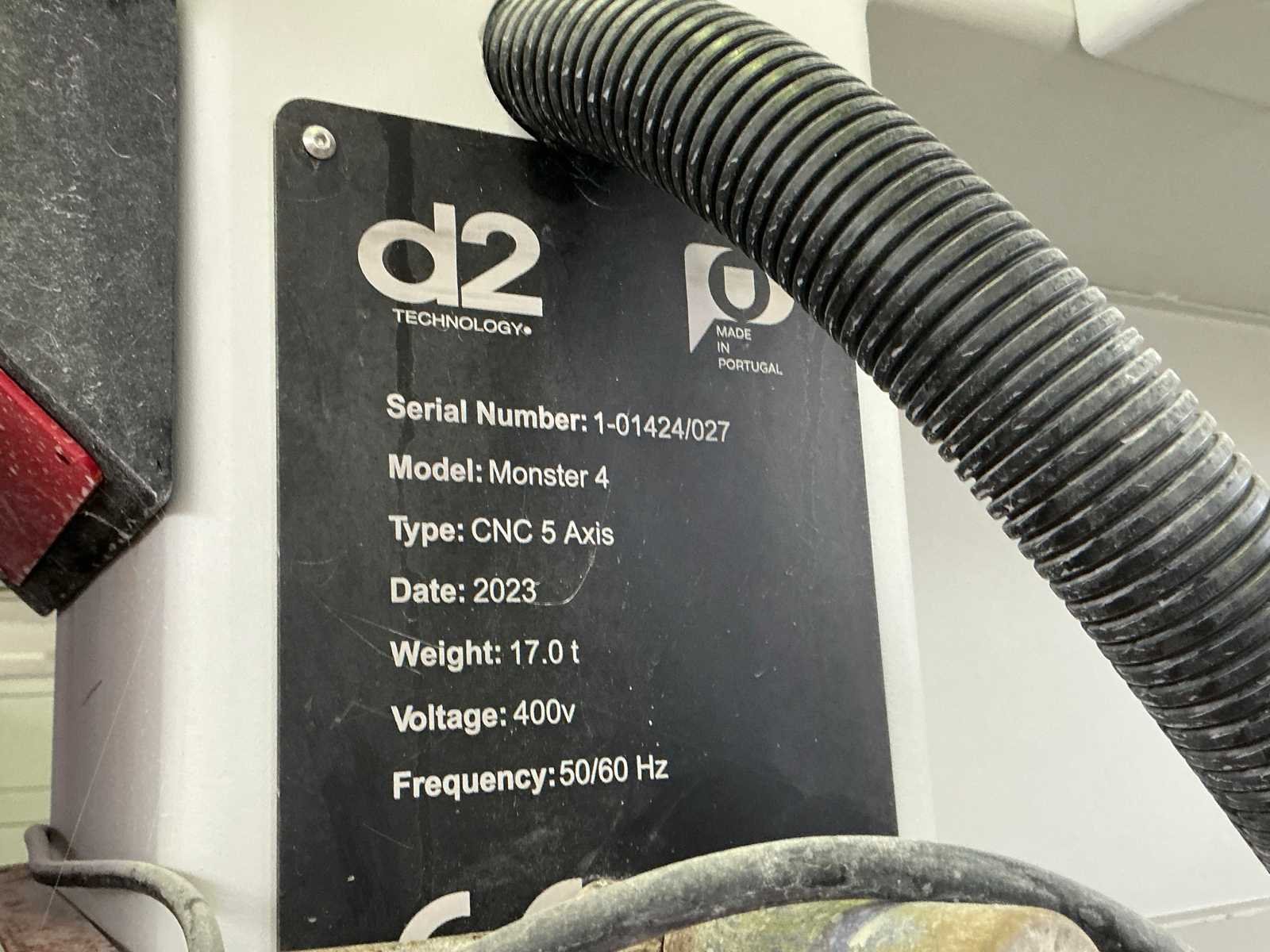 Totale afmetingen: 9365x6675x5092mm; transformator en stroomkabel naar machine niet inbegrepen Merk: D2 Technology Gereedschapswisselaar capaciteit: 20 Opspantafel afm. b: 2500mm Gereedschapswisselaar: true Opspantafel afm. l: 3800mm Verplaatsing z-as: 1300mm Verplaatsing y-as: 4350mm Aansluiting: 400V Aantal assen: 5 Machinegewicht: 17000kg Motorvermogen (kW): 55kW Bouwjaar: 2023 Verplaatsing x-as: 4000mm Serienummer: 1-01424/027 Type: MONSTER 4 EVOLUTION