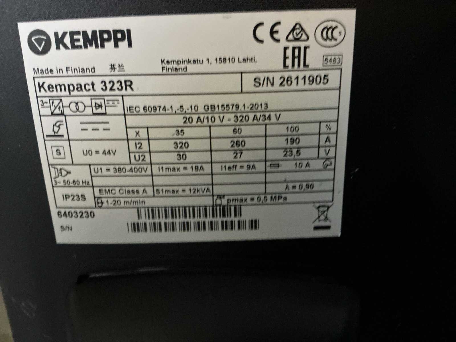 Kemppi kempact 323r mig lasapparaat geschikt voor 0.8-1.2 mm.