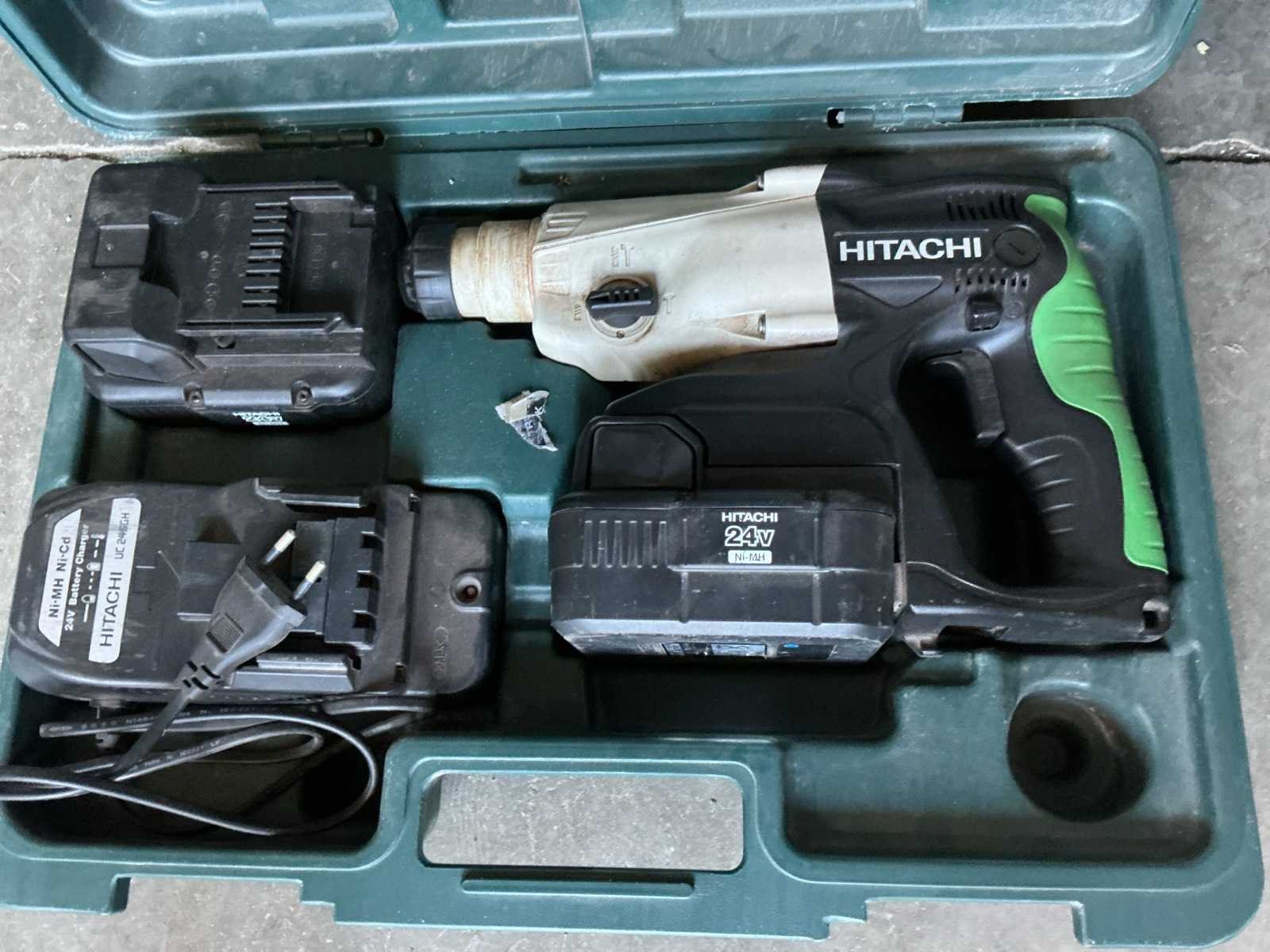 Merk: Hitachi Type: DH 24 DVC + DH 28 PC Accuspanning: 24V Aantal accu's: 2 Accu lader: true Klopboormachine: true Met koffer: true