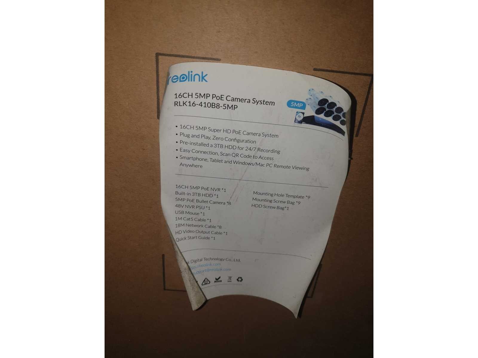 8x Caméra Surveillance 5MP, NVR 3To avec 16 chaines, Détection de Mouvement, Accès à Distance, Caméra Extérieur RLK16-410B8-5MP, 3To intégré, jusqu’à 12To Neuf, carton toujours fermé Non