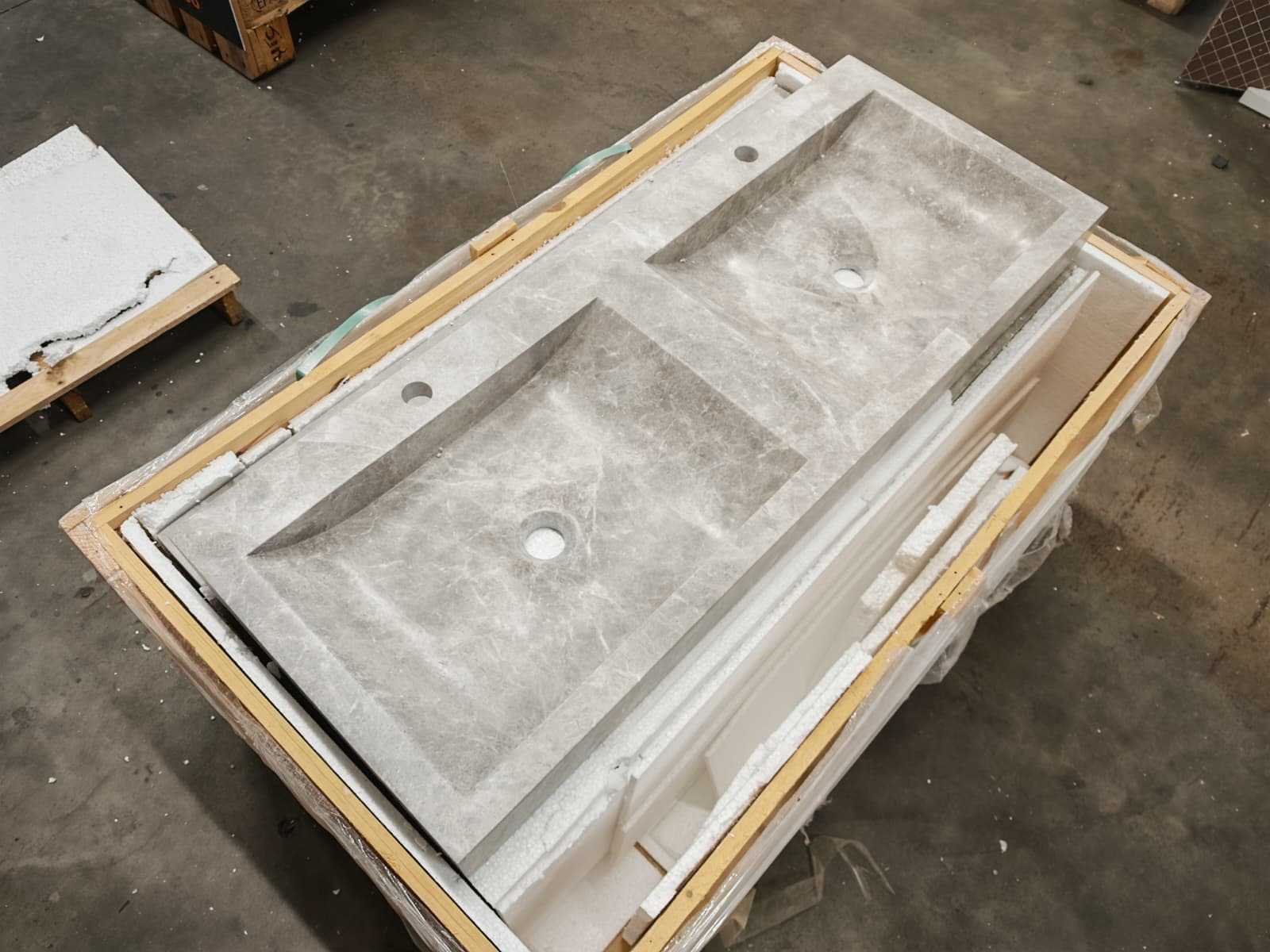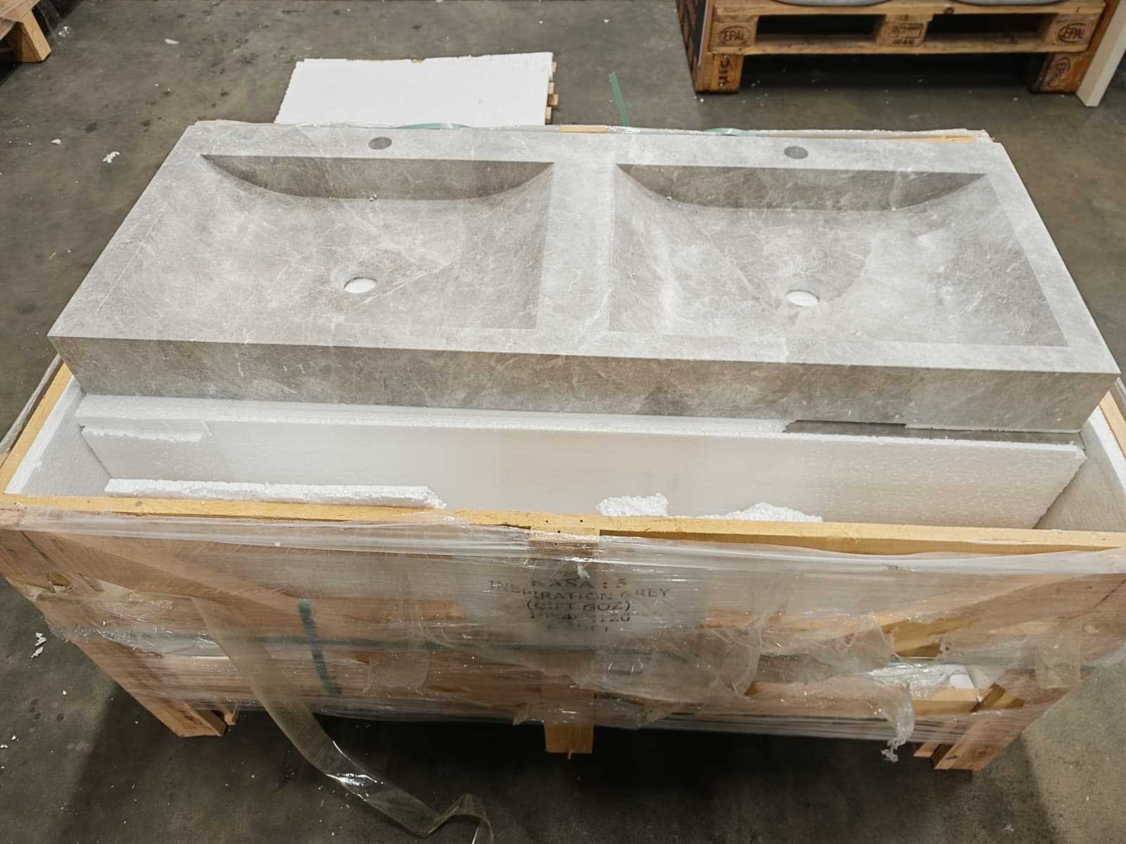 Natuursteen marmer grey/beige dubbele wastafel 120x46x10 cm