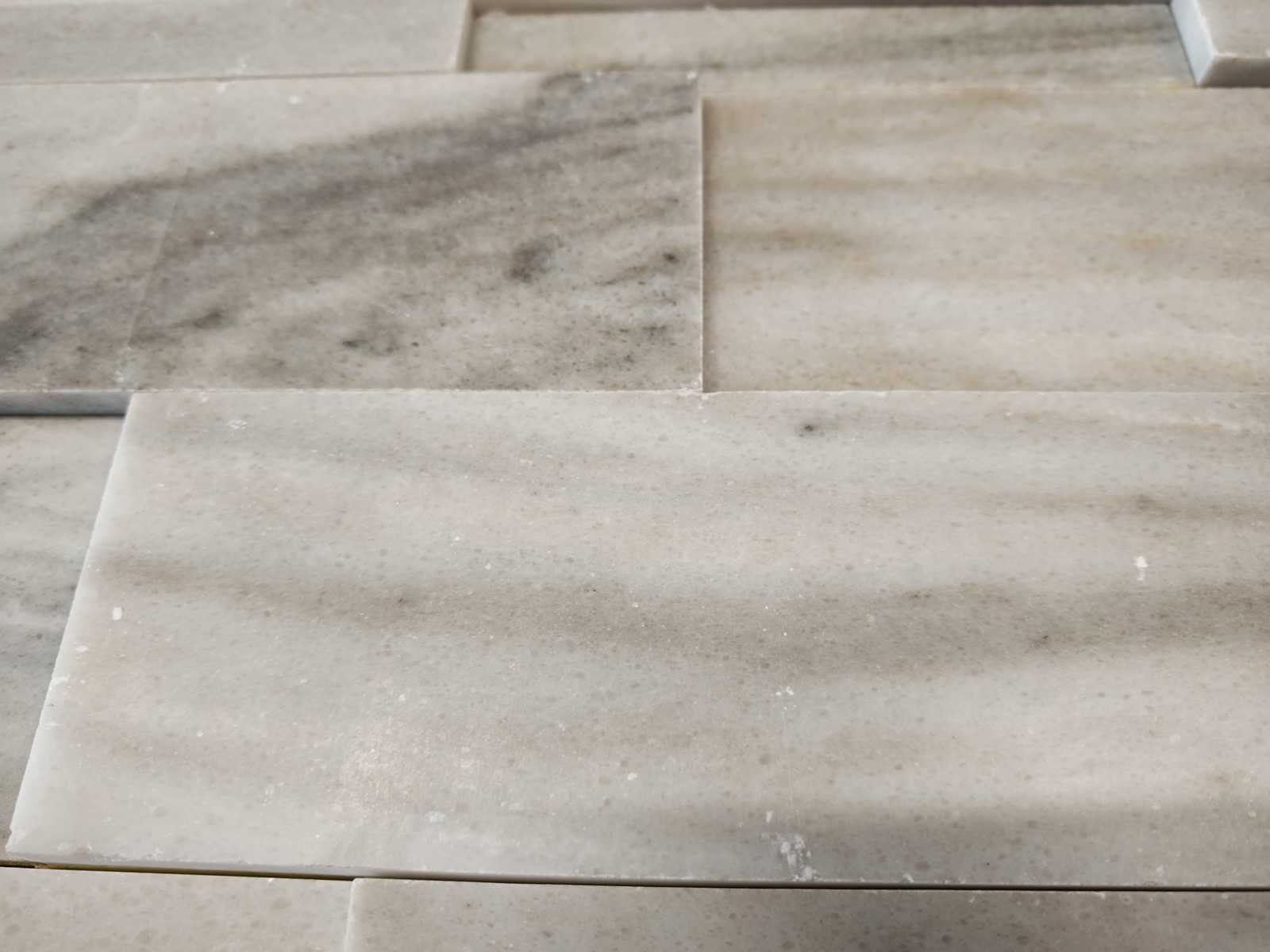 Merk: Natuursteen Kleur: Wit Afwerking: Gezoet Lengte: 15cm Breedte: 61cm Dikte: 12/20mm Materiaal: Marmer Type: Wandtegel Model: Skyline Honed New Elev. Pattern Aantal m² per verpakking: 0.0915m² Aantal pakken: 201 Totaal oppervlakte: 18.3m² Totaal gewicht: 550kg
