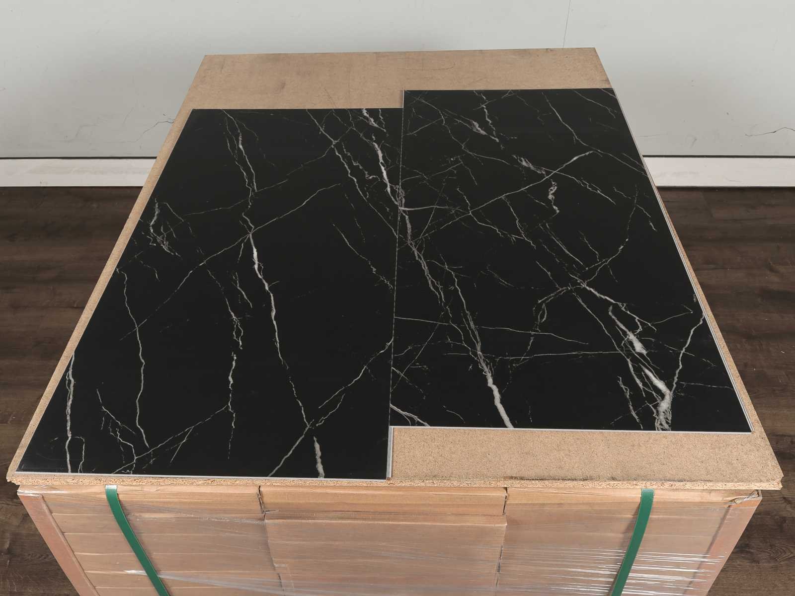 PVC click vloer, XL Tegel formaat, dikte 5 mm, spat water bestendig, voorzien van clicksysteem, vorstbestendig, ideaal voor vloerverwarming, kras en slijtvast, anti slip, gemakkelijk schoon te maken, 28 pakken a 3,572 m2 Merk: Airial flooring Product type: PVC Oppervlakte: 100m² Geschikt voor vloerverwarming: Ja V-groef: Nee Afwerking: Voelbaar structuur, anti slip Aantal m² per verpakking: 3.572m² Kleur: Marmor dark 808 XL Gewicht: 615kg Lengte: 950mm Breedte: 470mm Materiaal: PVC/SPC