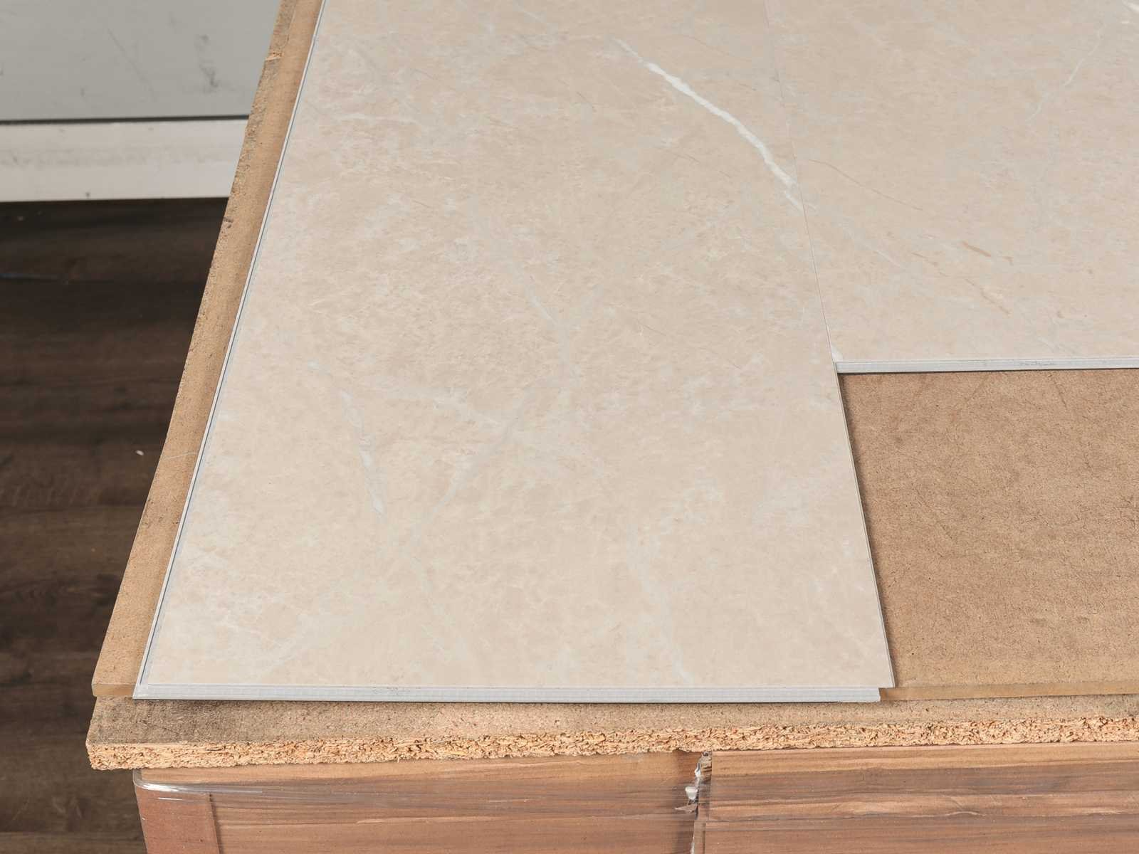Kwaliteits pvc click tegel vloer, voorzien van XPS onderlaag, vloer bestaat uit 4mm plus 1 mm XPS onderlaag, voorzien van solid polymeer core (SPC), stabiel vloer vereist geen aclimatisatie voor installatie, akoestisch dempend, ideaal voor gebruik in combinatie met vloerverwarming, krasbestendig en slijt vast, huisdiervriendelijk, onderhouds arm, water bestendig, vorstbestendig, anti slip, 65 pakken a 1,674 m2 Merk: Airial flooring Product type: PVC Oppervlakte: 108m² Geschikt voor vloerverwarming: Ja V-groef: Ja Afwerking: Voelbaar structuur, XPS onderlaag, anti slip, met v-groef Aantal m² per verpakking: 1.674m² Kleur: Marmor light T06 Gewicht: 1105kg Lengte: 610mm Breedte: 305mm Materiaal: PVC