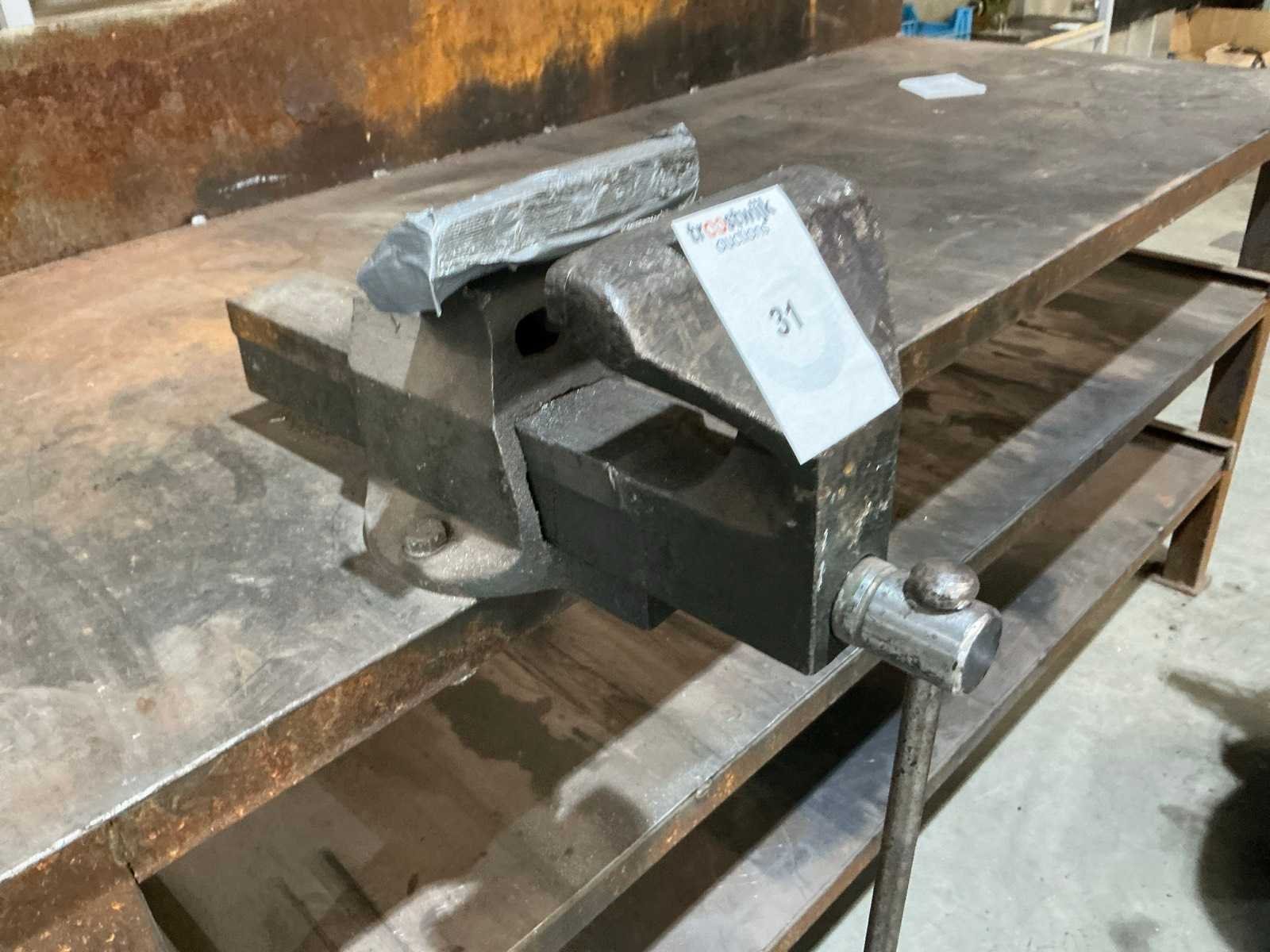 Werkblad 200x80cm, voorzien van bankschroef Breedte: 2000mm Lengte: 105mm Hoogte: 1140mm Materiaal: staal
