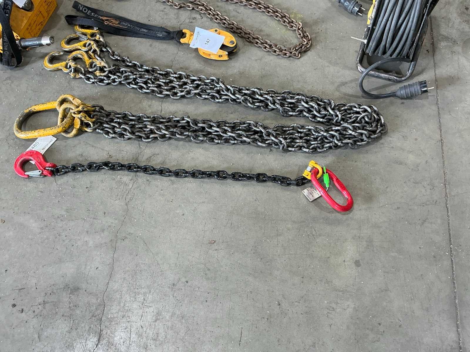 Zijnde 3x hijskettingen en 1x hijsklem.