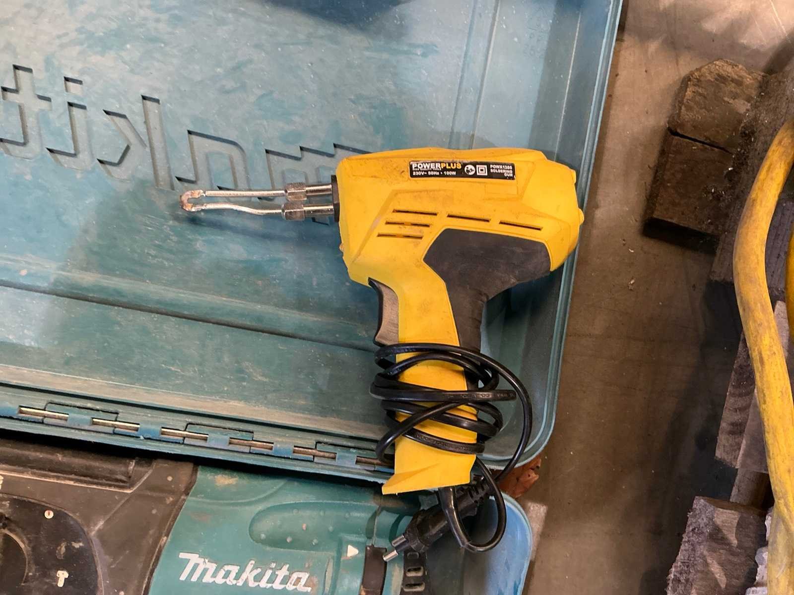 Zijnde Makita klopboormachine, Bosch haakse slijper en Powerplus soldeertoestel. Aansluiting: 230V