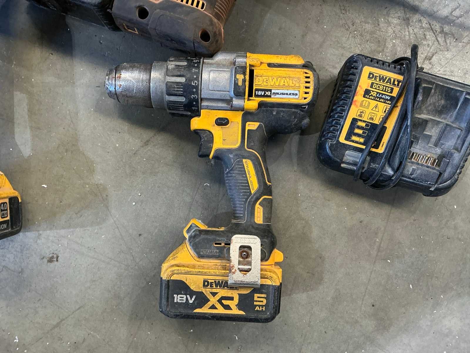 Zijnde haakse slijper type DCG412, klopboormachine type DCH273, en schroefboormachine. Met 3 accu en 1x acculader. Merk: Dewalt