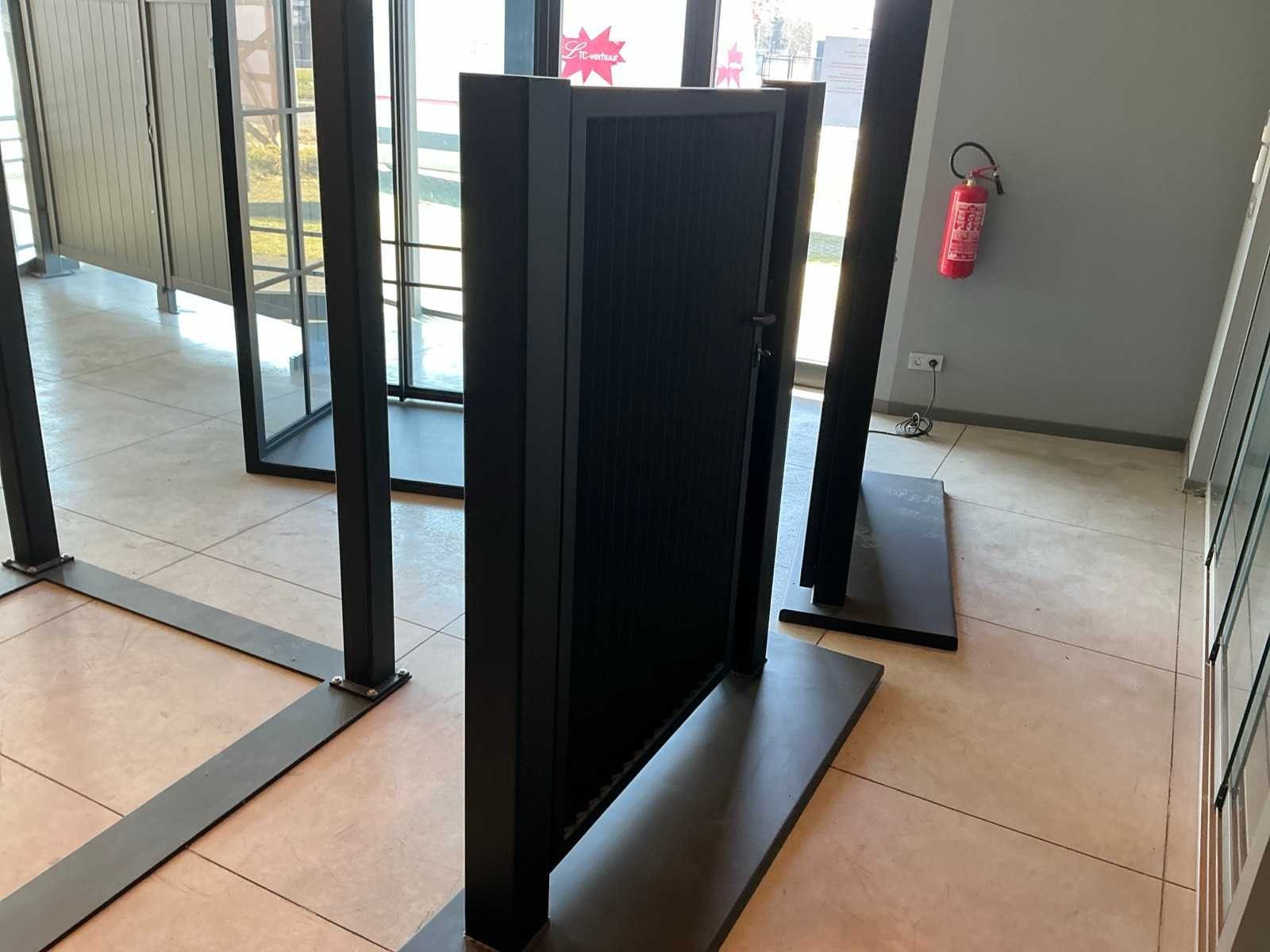 <Br> - Totale afmeting: circa 126xH157cm. - Palen vastgelast op metalen voetplaten.