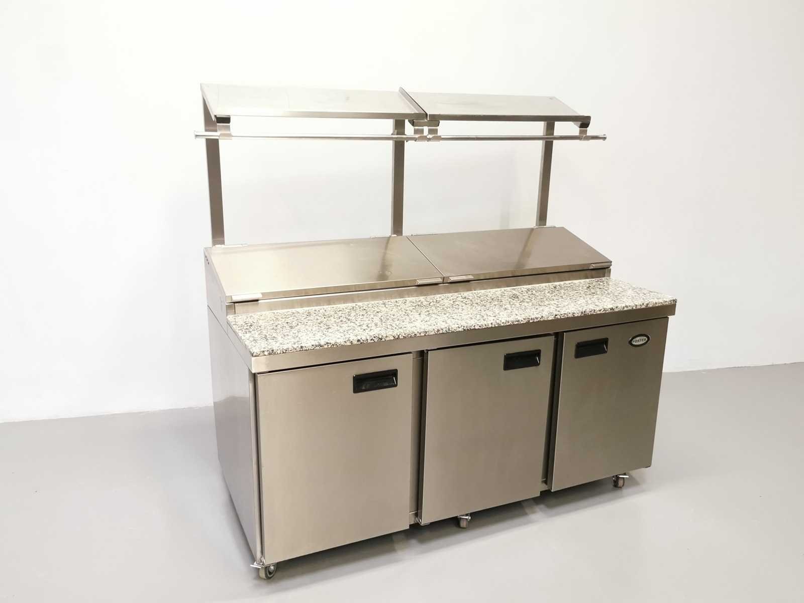 Uitgerust met roestvrijstalen schalen, een marmeren aanrechtblad, bovenste plank en bovenste opbergruimte Merk: Foster Type: FPS3GR Totale afmeting L: 173cm Totale afmeting Breedte: 85cm Totale afmeting Hoogte: 165cm Digitale uitlezing: true Ingebouwde koelcompressor: true Rvs: true Aansluiting: 230V Mobiel: true