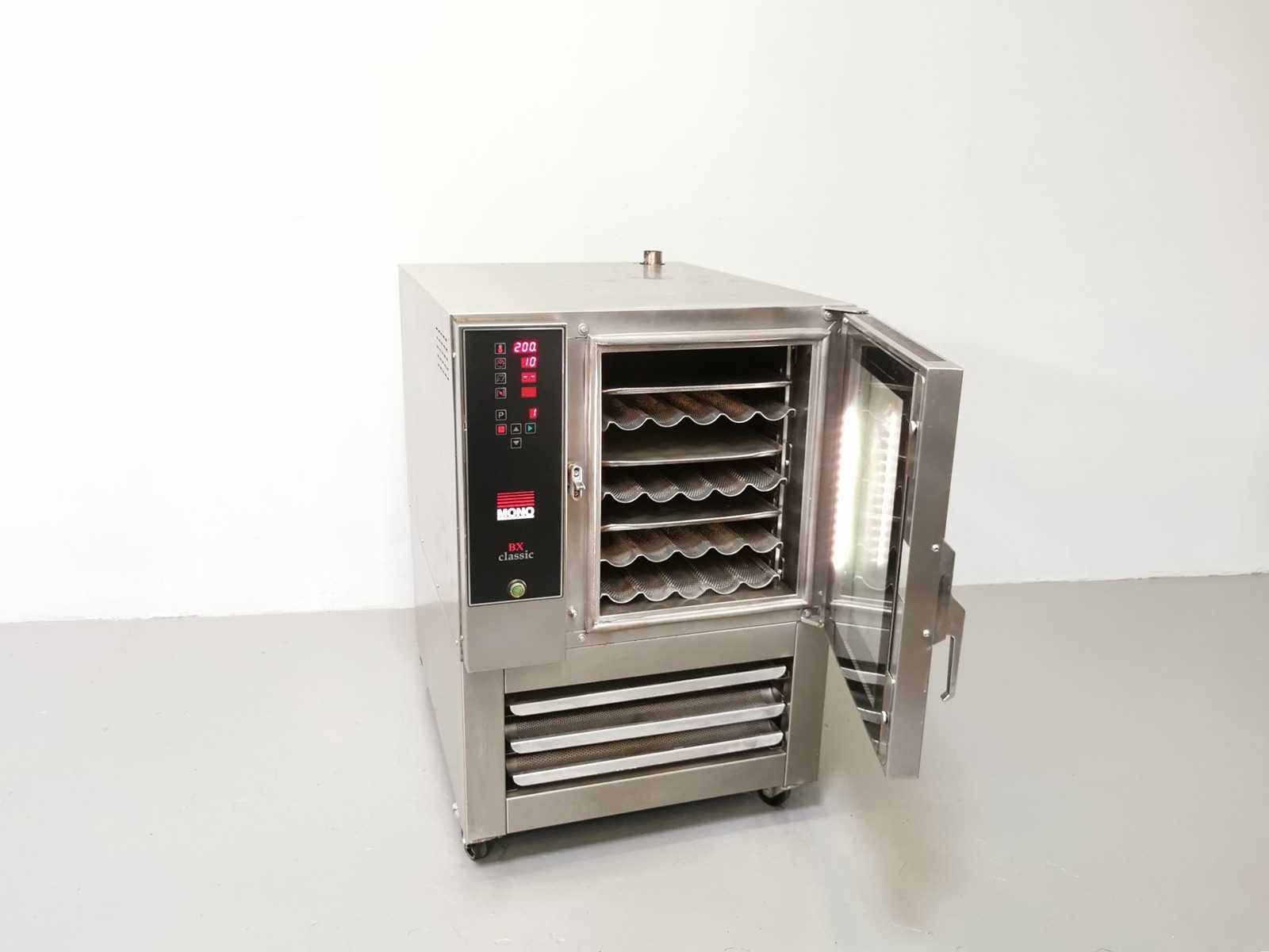 Op de mobiele standaard Merk: Mono Type: BX CLASSIC Aantal niveau's: 7 Aansluiting: 380V Touchscreen bediening: true Digitale besturing: true Elektrisch: true Rvs: true Totale afmeting L: 77cm Totale afmeting Breedte: 106cm Totale afmeting Hoogte: 115cm
