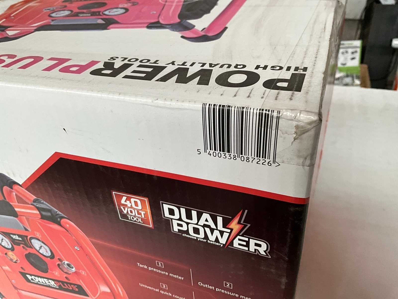 Nieuw in doos. Merk: PowerPlus Type: POWDP7070 Serienummer: 5400338087226 Capaciteit.: 8bar Luchtstroom: 36l/min Buffertank inhoud: 5l