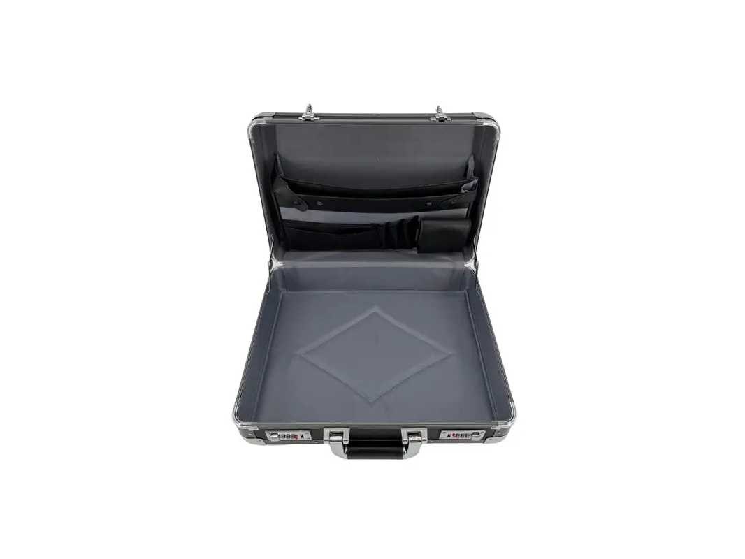Sluiting: 2 combinatiesloten. Binnenzijde: uitneembaar vak, 2 visitekaartvakken, 3 pennenlussen, ritsvak en 2 A4 steekvakken. Verstevigde randen voor extra bescherming. Model: 2489 Kleur: Zwart Gewicht: 2.37kg Lengte: 35cm Breedte: 46cm Hoogte: 15cm Materiaal: Aluminium GS Code: 5425003384899