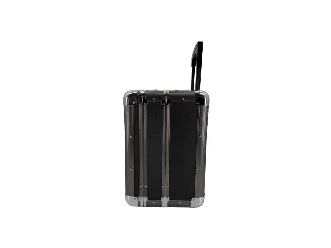 Buitenafmetingen: ca. 38,5 x 45 x 25 cm. Binnenzijde bovenste vak: ca. 35,5 x 43,5 cm met afneembare organizer (bovenin ca. 4 cm, onder ca. 3 cm dik). Binnenzijde onderste vak: ca. 35,5 x 43,5 x 8,5 cm met schuimrubber inzetstuk (ca. 8 cm dik). Gebruik: geschikt voor laptops (tot 17″), gereedschap, camera’s, documenten en meer. Trolley: uitschuifbaar tot ca. 102, 2 robuuste wielen voor soepel transport, beide vakken individueel afsluitbaar. Model: 2493zw Kleur: Zwart Gewicht: 5.8kg Lengte: 38.5cm Breedte: 45cm Hoogte: 25cm Materiaal: Aluminium GS Code: 5425003389344