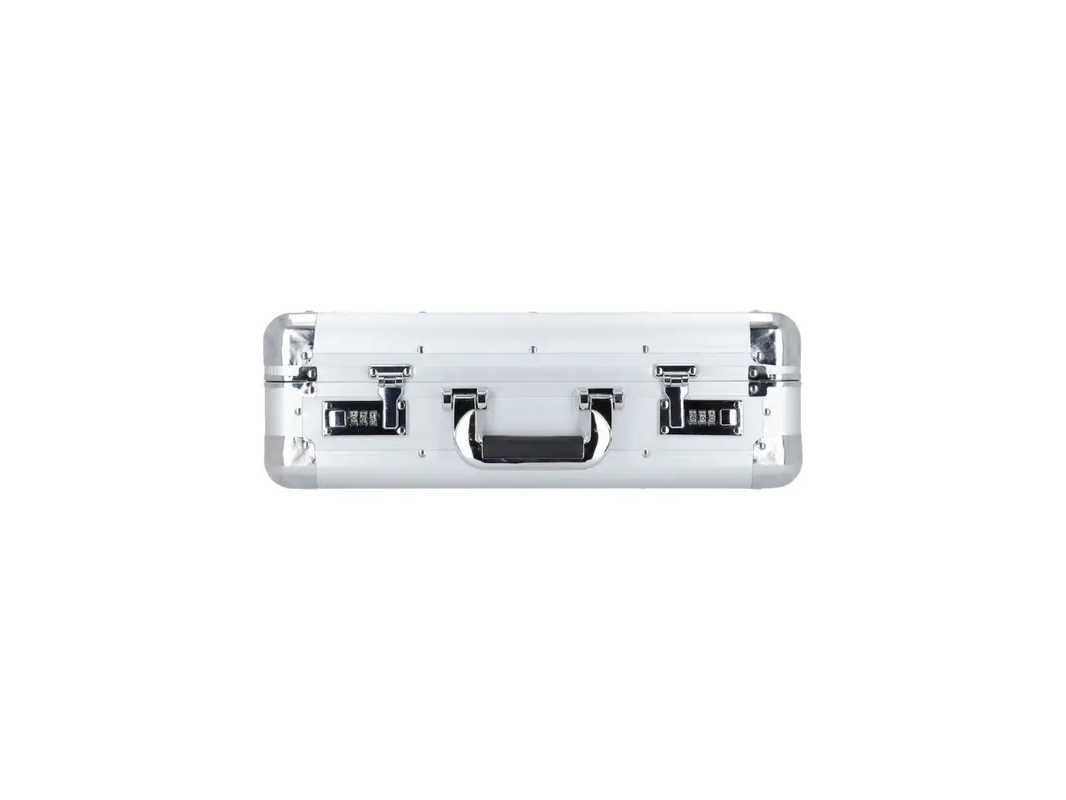 Sluiting: 2 combinatiesloten. Binnenzijde: uitneembaar vak, 2 visitekaartvakken, 3 pennenlussen, ritsvak en 2 A4 steekvakken. Verstevigde randen voor extra bescherming. Model: 2480 Kleur: Zilver Gewicht: 2.37kg Lengte: 35cm Breedte: 46cm Hoogte: 15cm Materiaal: Aluminium GS Code: 5425003384806