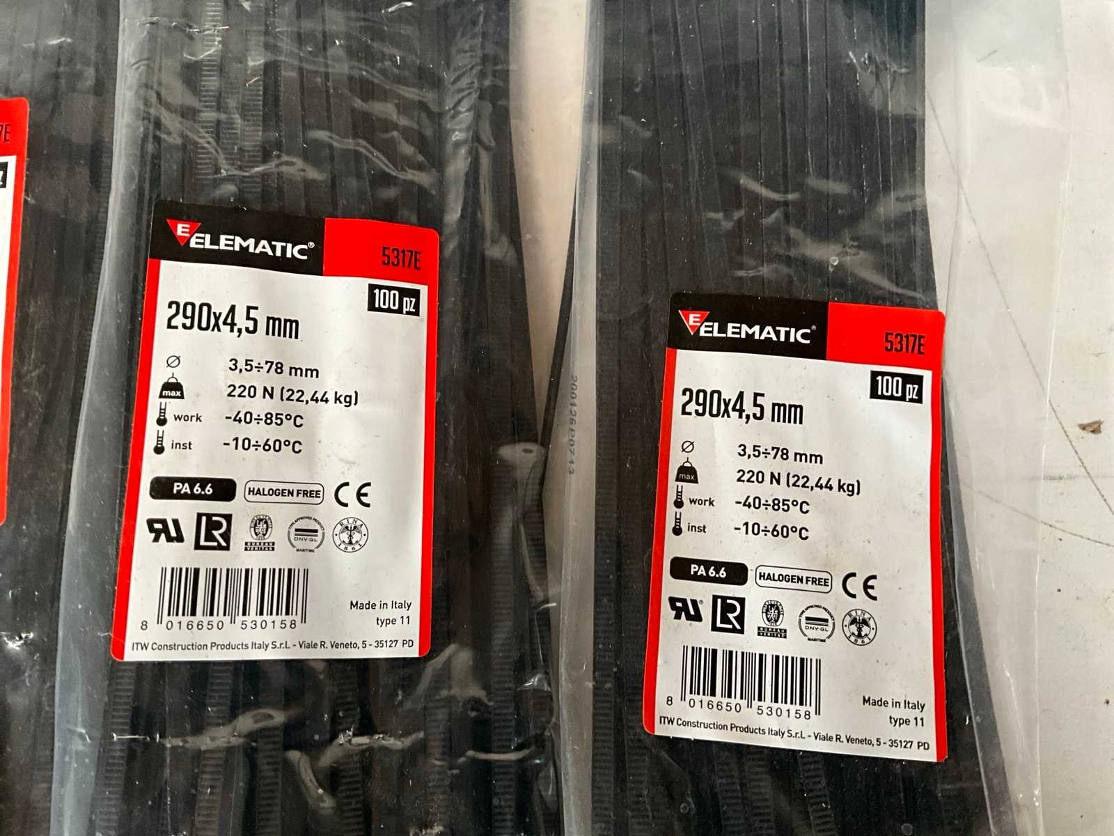 Kavel bestaande uit; 9x Elematic kabelbinder 290x4,5 mm 100 stuks, 1x HellermannTyton artikel nummer 156-00275 250 stuks. Merk: Elematic & HellermanTyton