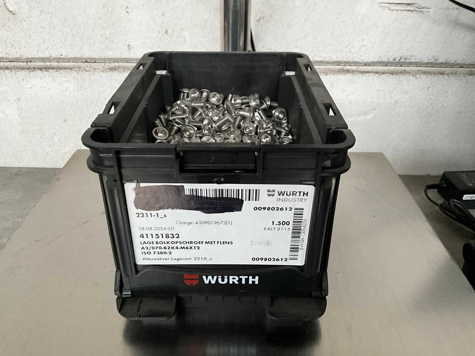 Würth 6.11 kg lage bolkop schroef met flens m6x12 in stapelbare bak