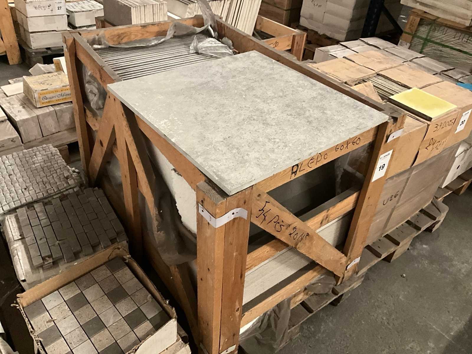 Bestaand uit 1x houten palletbox met 54 tegels Merk: Aledo Lengte: 60cm Breedte: 60cm Aantal pakken: 1 Totaal oppervlakte: 20m²