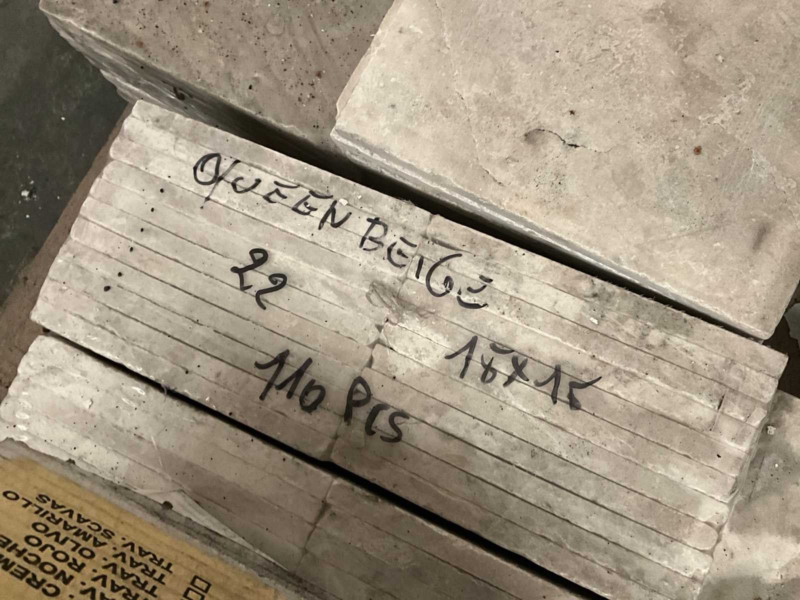 Bestaand uit tegel 10x10 cm, 15x15 cm, 20x20 cm +18x15 cm, op pallet