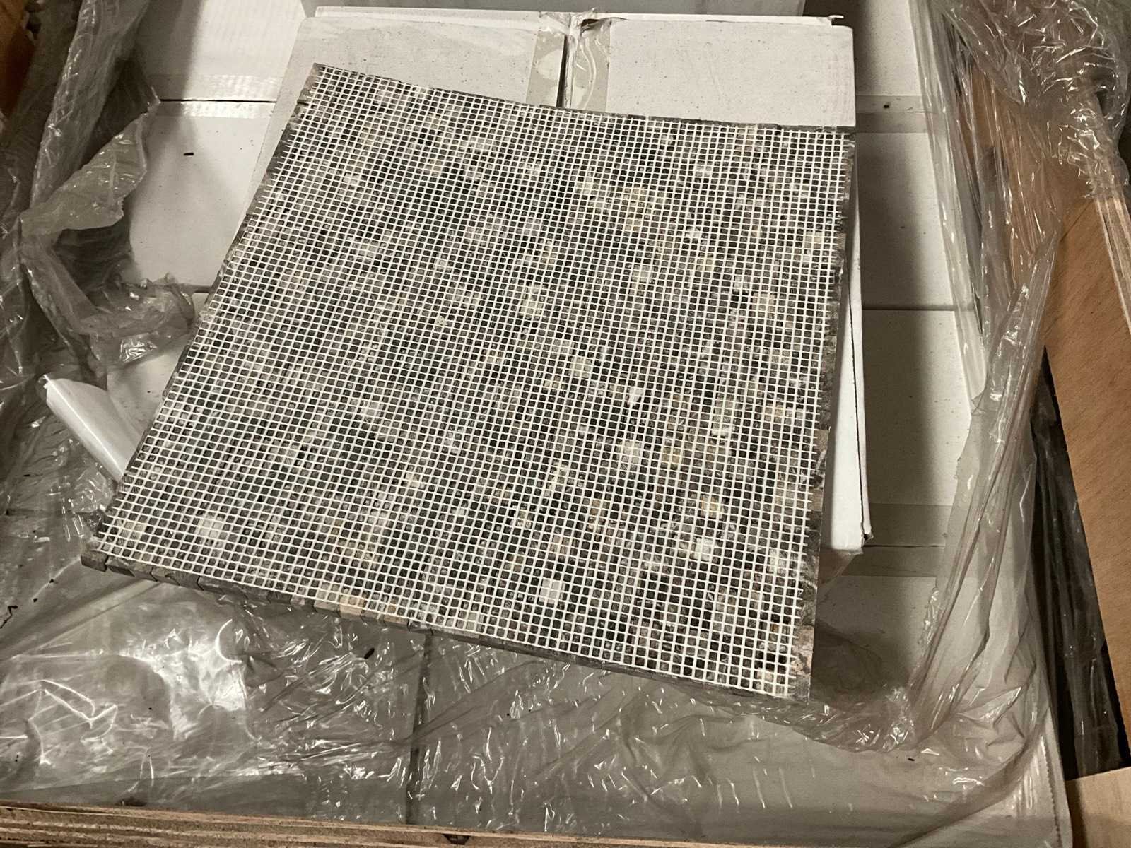 Circa 198 tegels, Afmeting per tegel 307x307 cm, Mozaïek blokjes van 10x10 mm, in palletbox Type: Emperador Totaal oppervlakte: 17.82m²