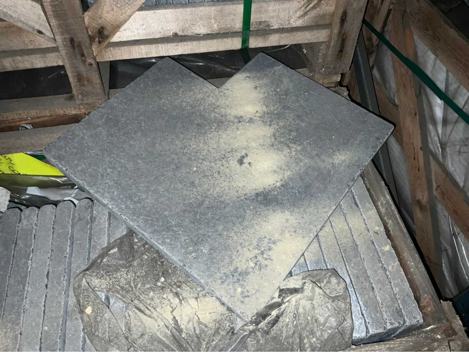 Hoek uit van 15x15 cm, op te vullen met tegel 30x30 cm, Op 3x pallet Kleur: Grijs Lengte: 50cm Breedte: 50cm Dikte: 30mm Type: Bluestone honed Antic Aantal pakken: 3 Totaal oppervlakte: 21m²