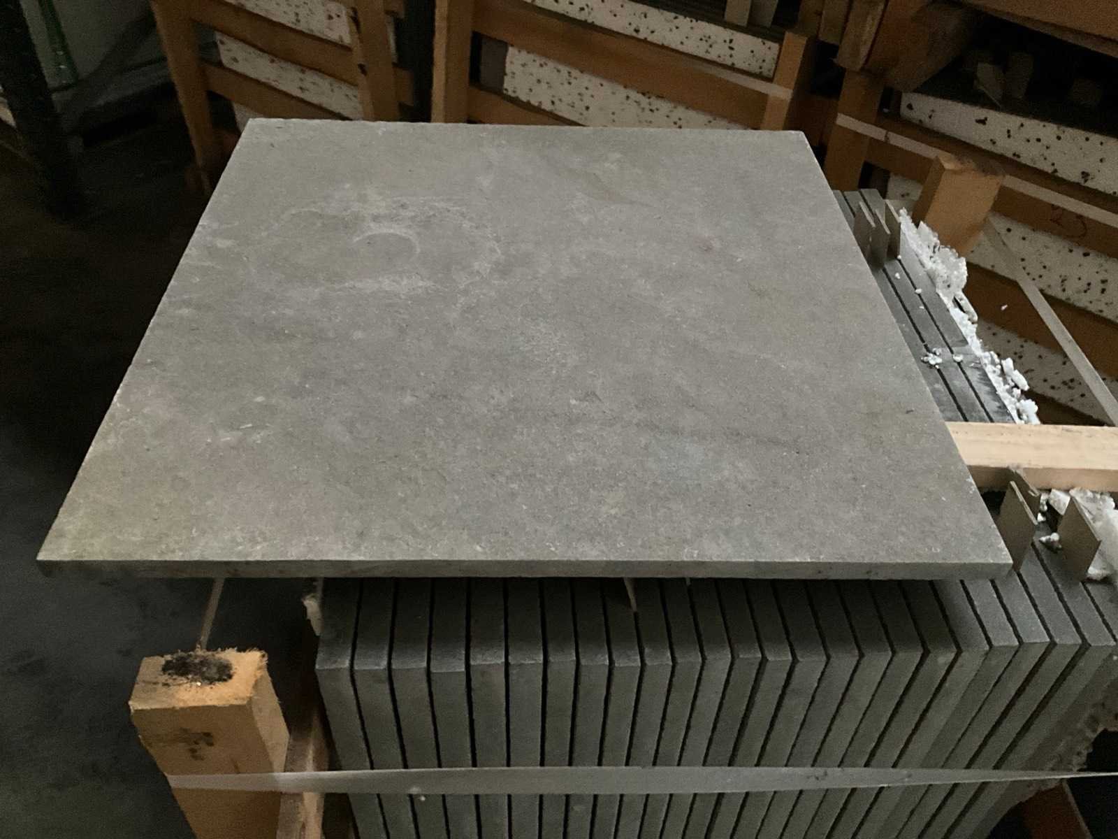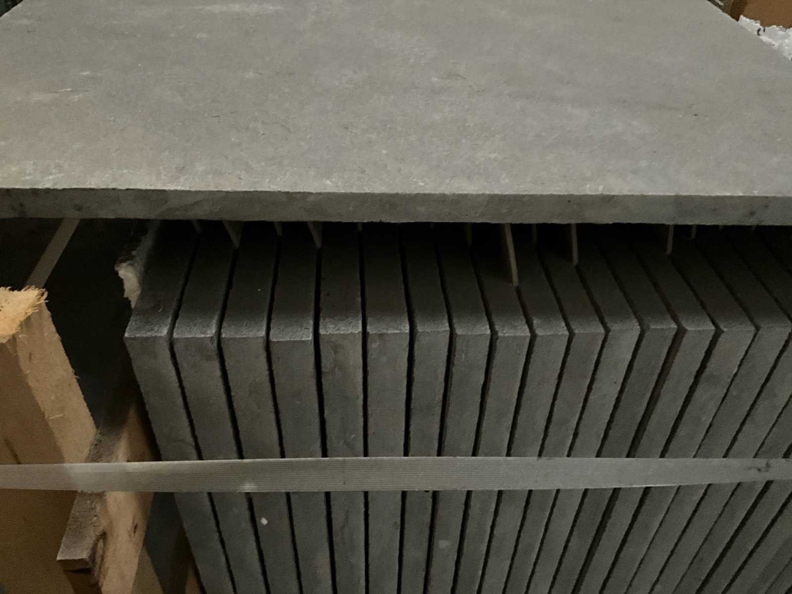 Bestaand uit 8 x pallet Lengte: 60cm Breedte: 60cm Dikte: 16mm Type: Marokkaans grijze natuursteen Totaal oppervlakte: 61.56m²