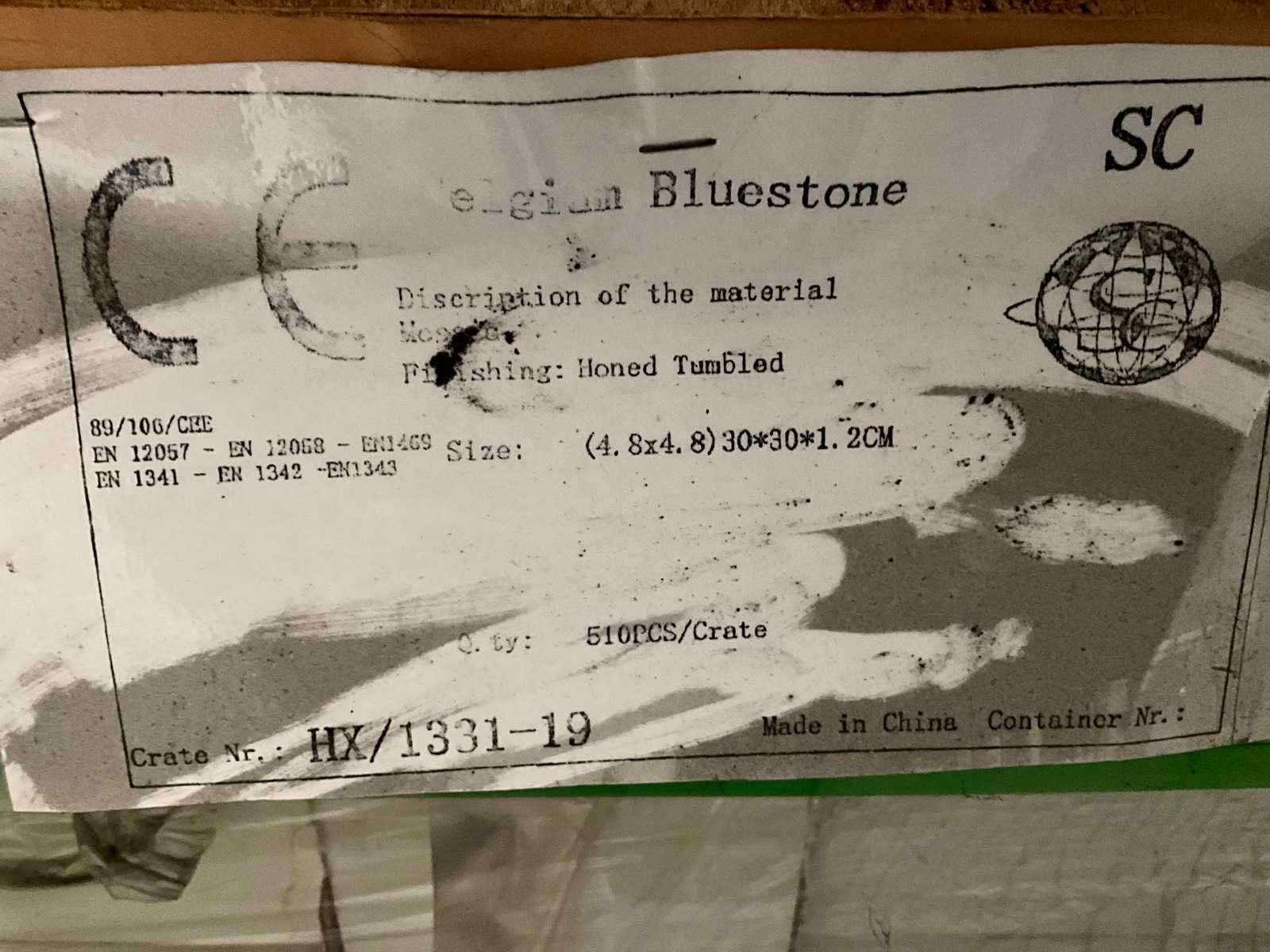 Op pallet, mozaïek van 48x48 mm Lengte: 30cm Breedte: 30cm Dikte: 12mm Type: Grijs honed tumbled Totaal oppervlakte: 46.8m²