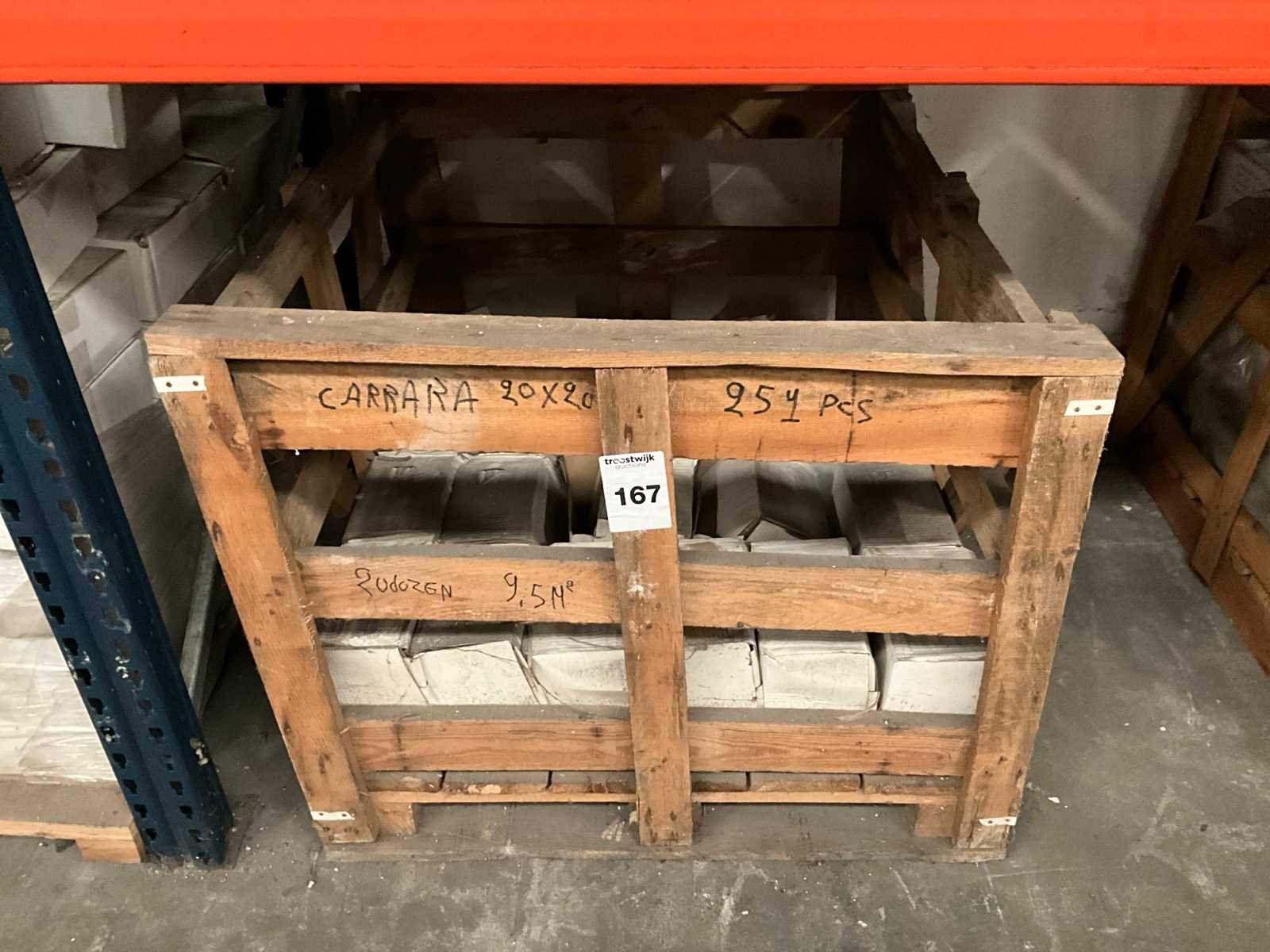 Op pallet Lengte: 20cm Breedte: 20cm Dikte: 10mm Type: Carara Aantal m² per verpakking: 9.5m²