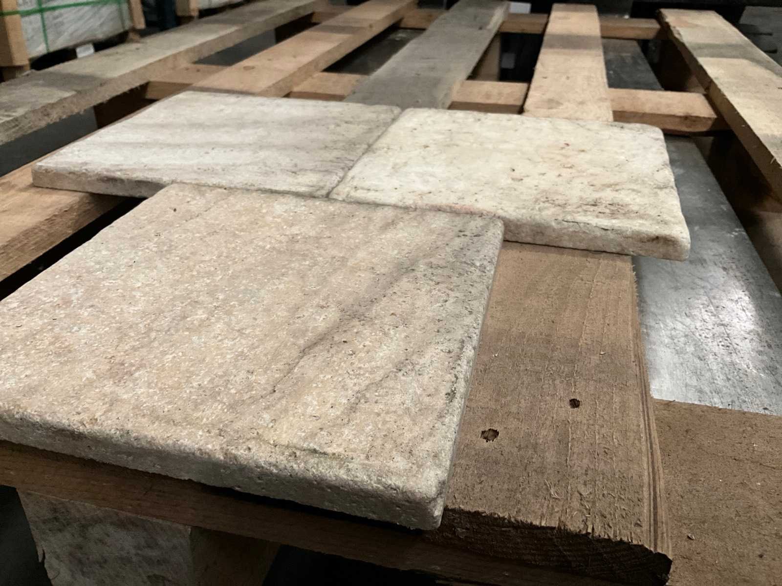 Op pallet Lengte: 20cm Breedte: 20cm Dikte: 12mm Type: Égypte désert gold Aantal m² per verpakking: 7m²