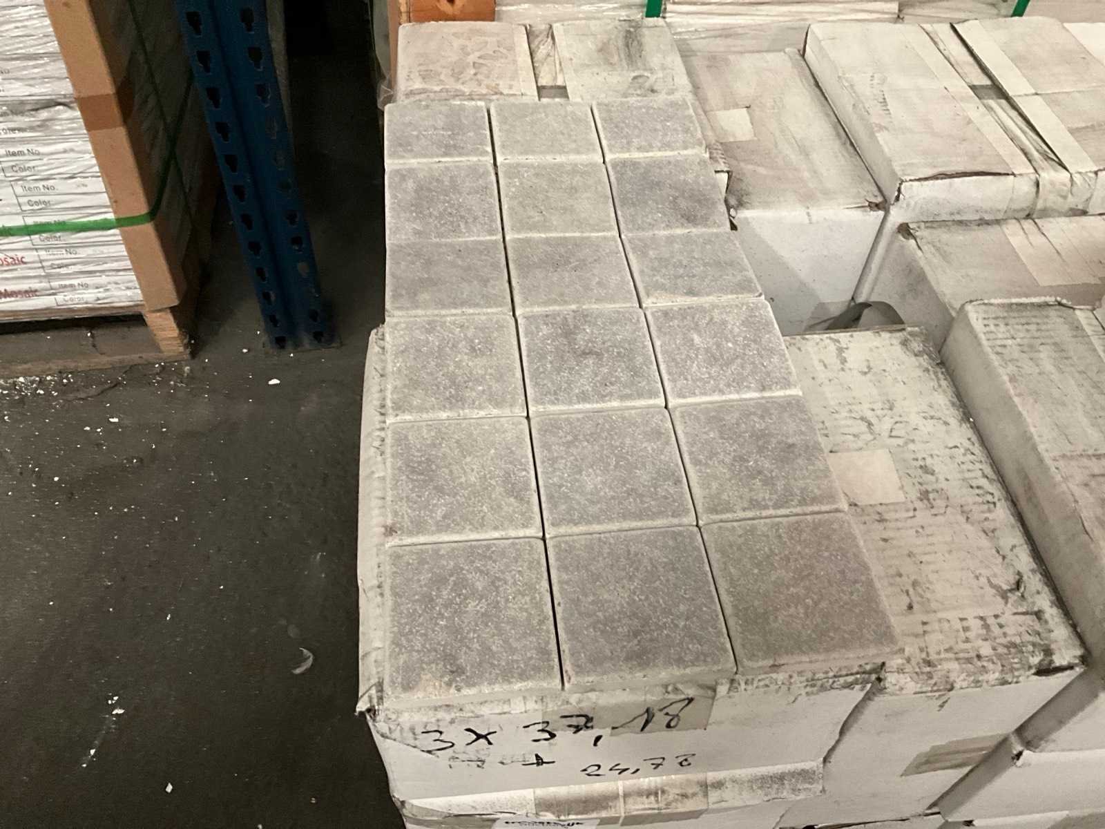Op 4x pallet, Mosaics 90x90 mm Lengte: 27cm Breedte: 27cm Dikte: 12mm Type: Marmochino kesra Totaal oppervlakte: 136.32m²