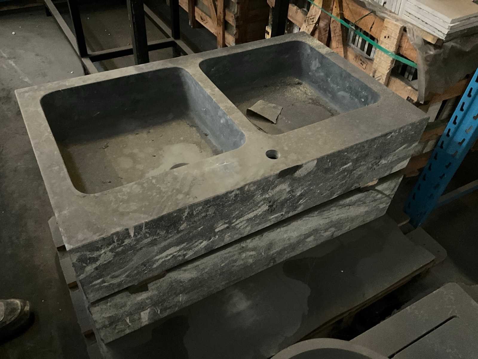 Massief blauwsteen dubbele wastafel