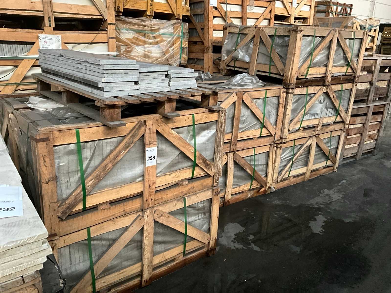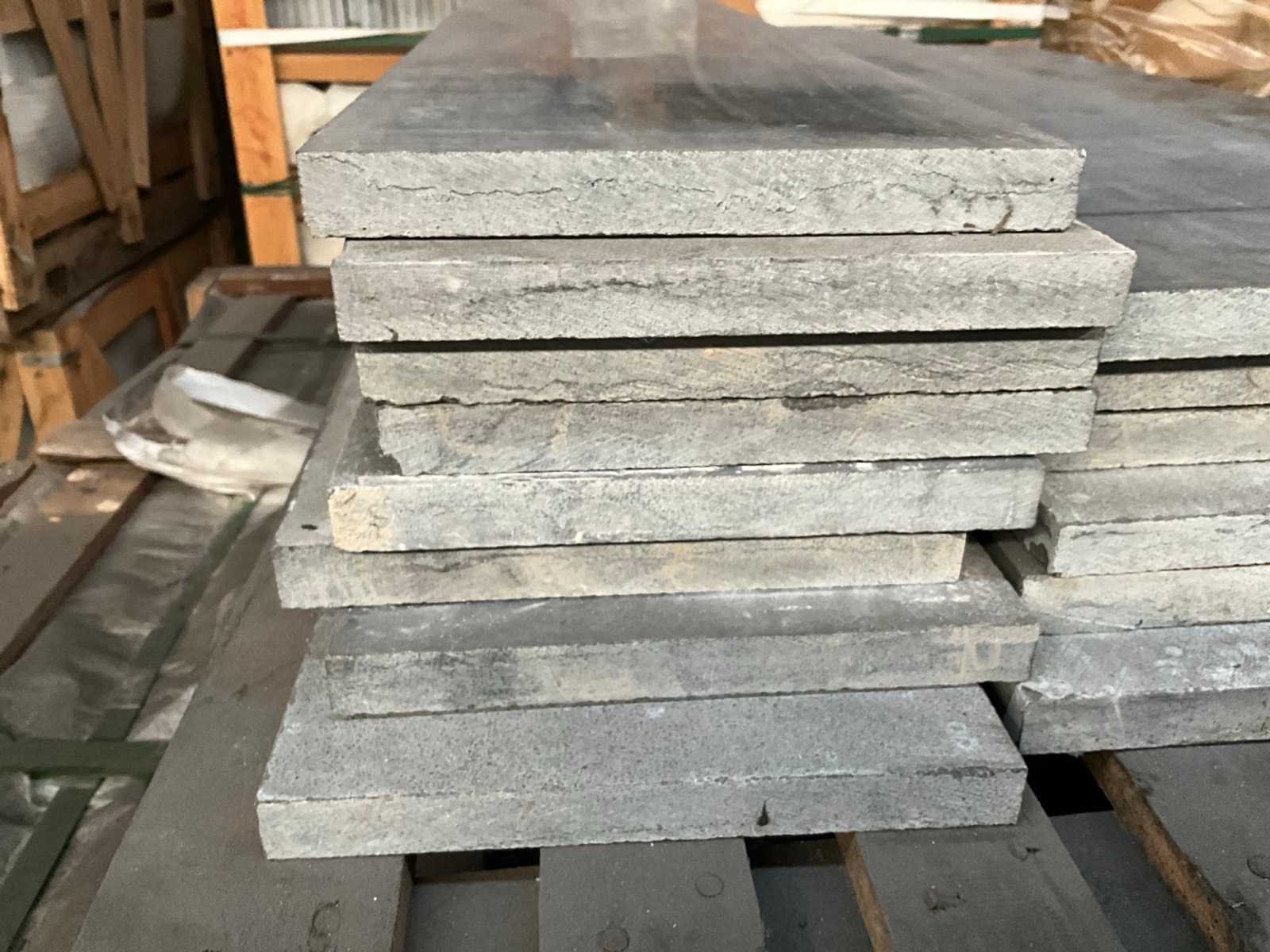 In 8x palletbox Lengte: 100cm Breedte: 20cm Dikte: 20mm Type: Chinese blauwsteen Aantal pakken: 8 Totaal oppervlakte: 141m²