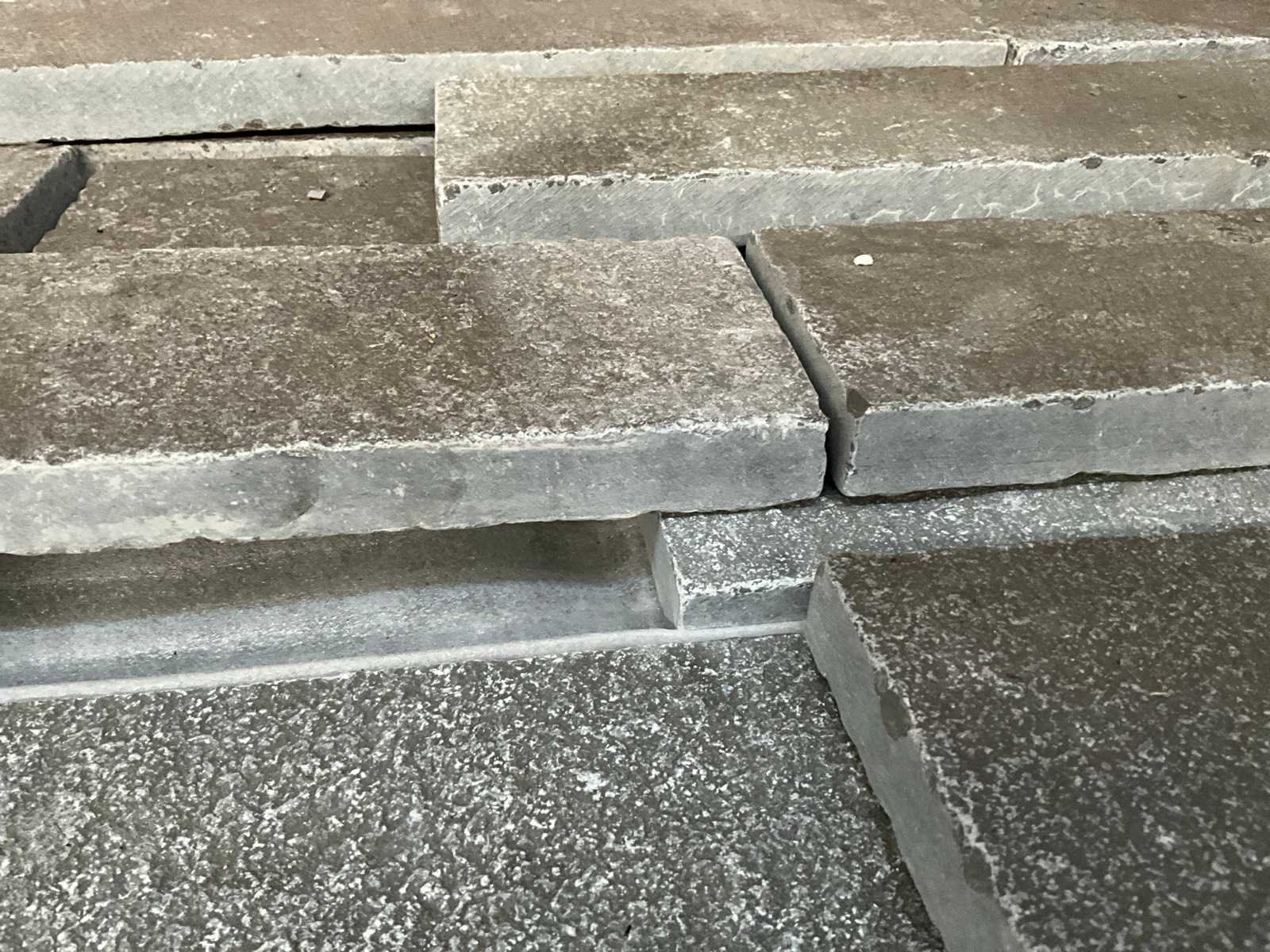 In breedtes van 120-160 mm en diverse lengtes, In 7x palletbox Dikte: 30mm Type: Indisch grijs Aantal pakken: 7 Totaal oppervlakte: 105m²