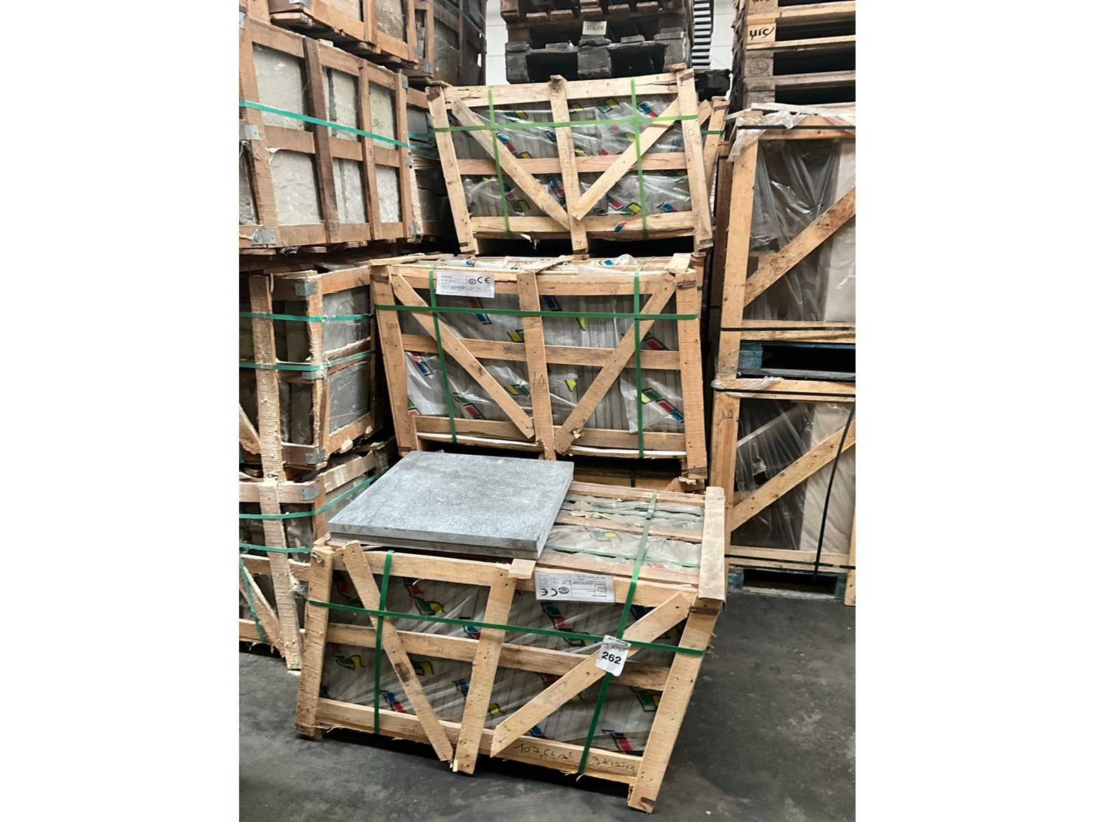 In 9x palletbox Lengte: 60cm Breedte: 60cm Dikte: 30mm Type: Chinese blauwsteen Aantal pakken: 9 Totaal oppervlakte: 107.74m²
