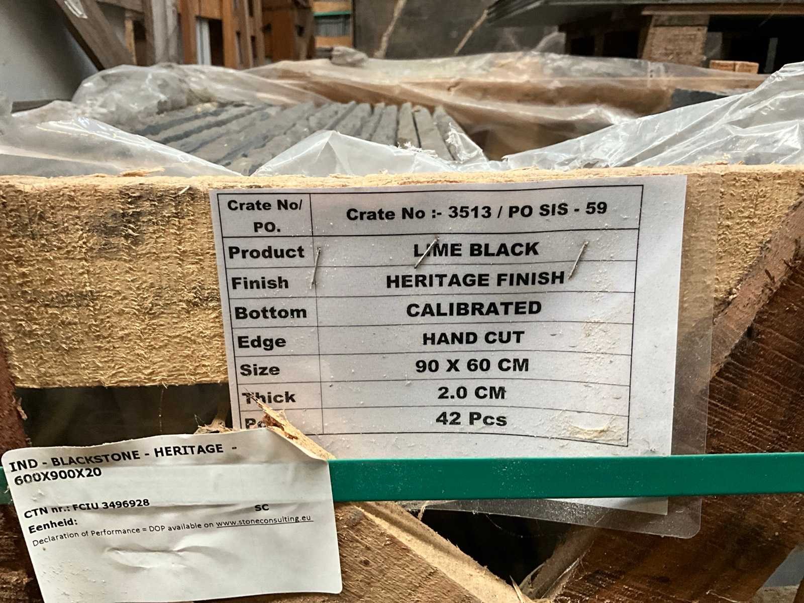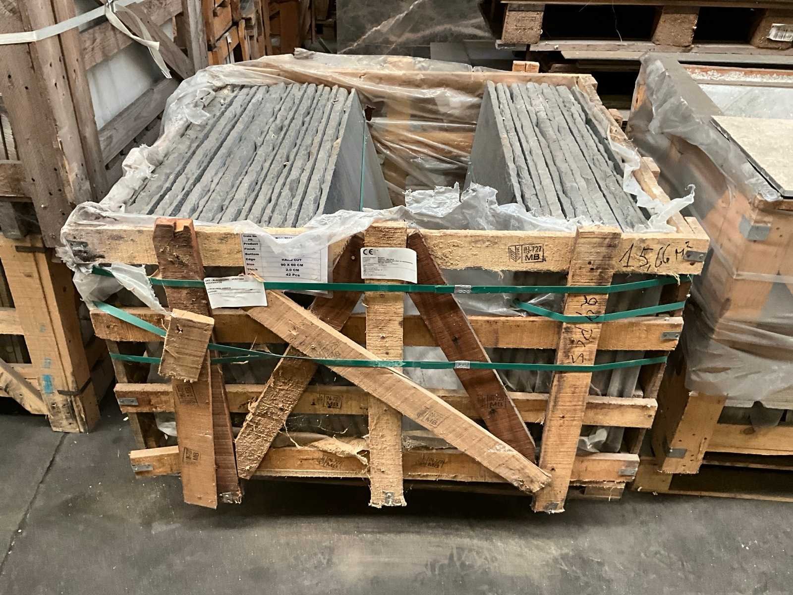 In 1x palletbox Lengte: 90cm Breedte: 60cm Dikte: 20mm Type: Indisch zwart Aantal pakken: 1 Totaal oppervlakte: 15.66m²