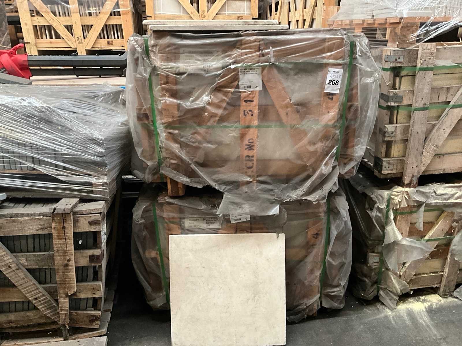 In 2x palletbox Lengte: 60cm Breedte: 60cm Dikte: 20mm Type: Tunesië beige Aantal pakken: 2 Totaal oppervlakte: 32m²