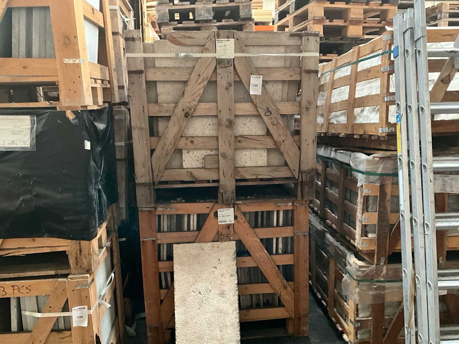 Variabele lengtes, In 4x palletbox Breedte: 400cm Dikte: 20mm Type: Marokkaanse travertin Aantal pakken: 4 Totaal oppervlakte: 100m²