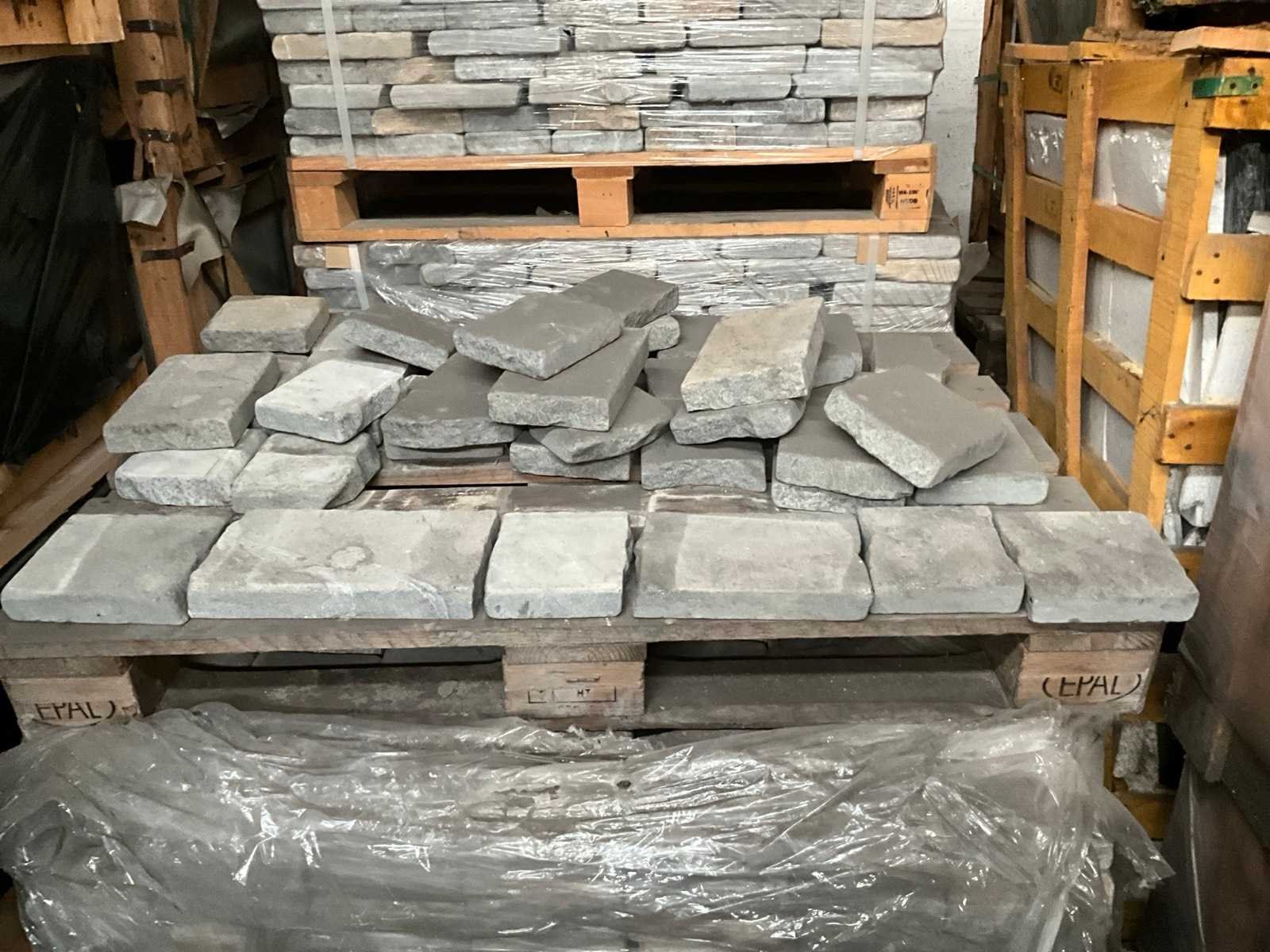 Variabele lengtes, In 5x palletbox Breedte: 15cm Dikte: 30mm Type: Marokkaans grijs rustiek Aantal pakken: 5 Totaal oppervlakte: 65m²