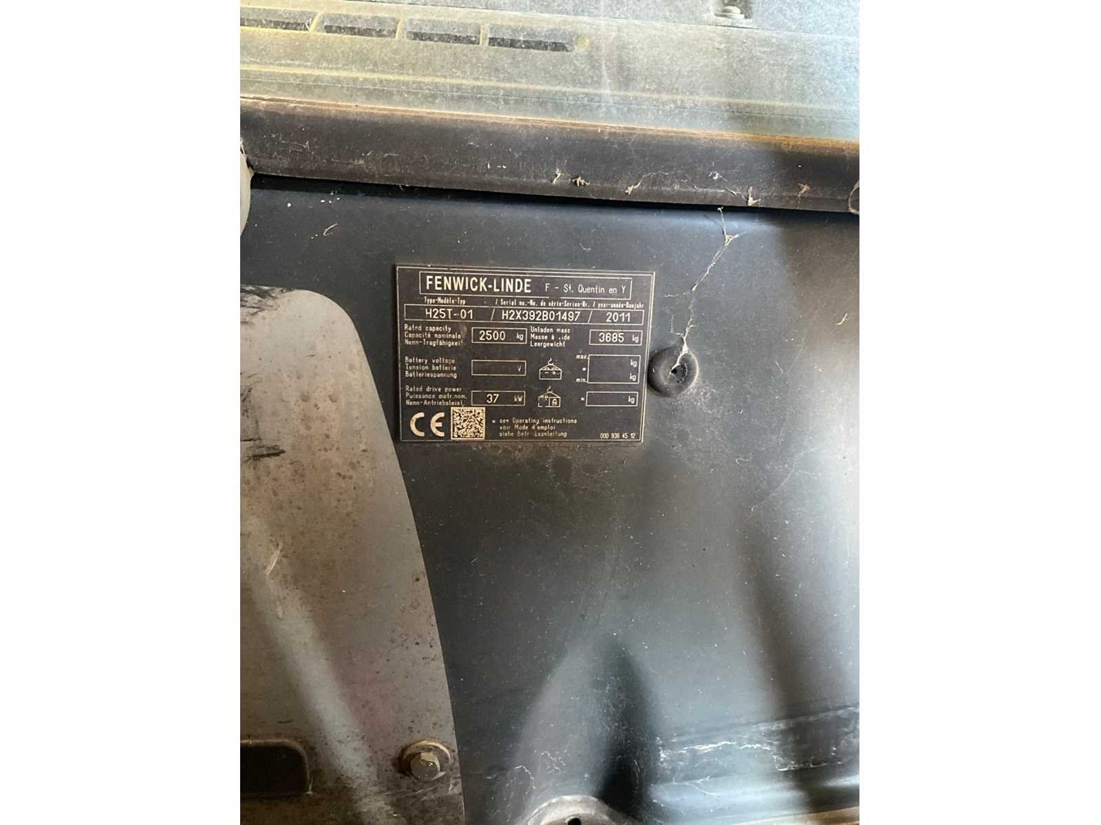 Voorzien van navulbare lpg tank, hydrostaat aandrijving, semi gesloten cabine, werking niet gekend, werkuren niet gekend Merk: Linde Type: H25T-01 Bouwjaar: 2011 Serienummer: H2X392B01497 Brandstof: LPG Soort band: Volrubber banden Aantal wielen: 4 Free-lift: true Side-shift: true Duplex mast: true Eigen gewicht: 3685kg Hefvermogen: 2500kg Lepellengte: 1150mm Hefhoogte: 3300mm Vol rubber banden: true Minimale doorrijhoogte: 2200mm Totale afmeting L: 2700mm Totale afmeting Breedte: 1200mm Totale afmeting Hoogte: 2200mm LPG: true