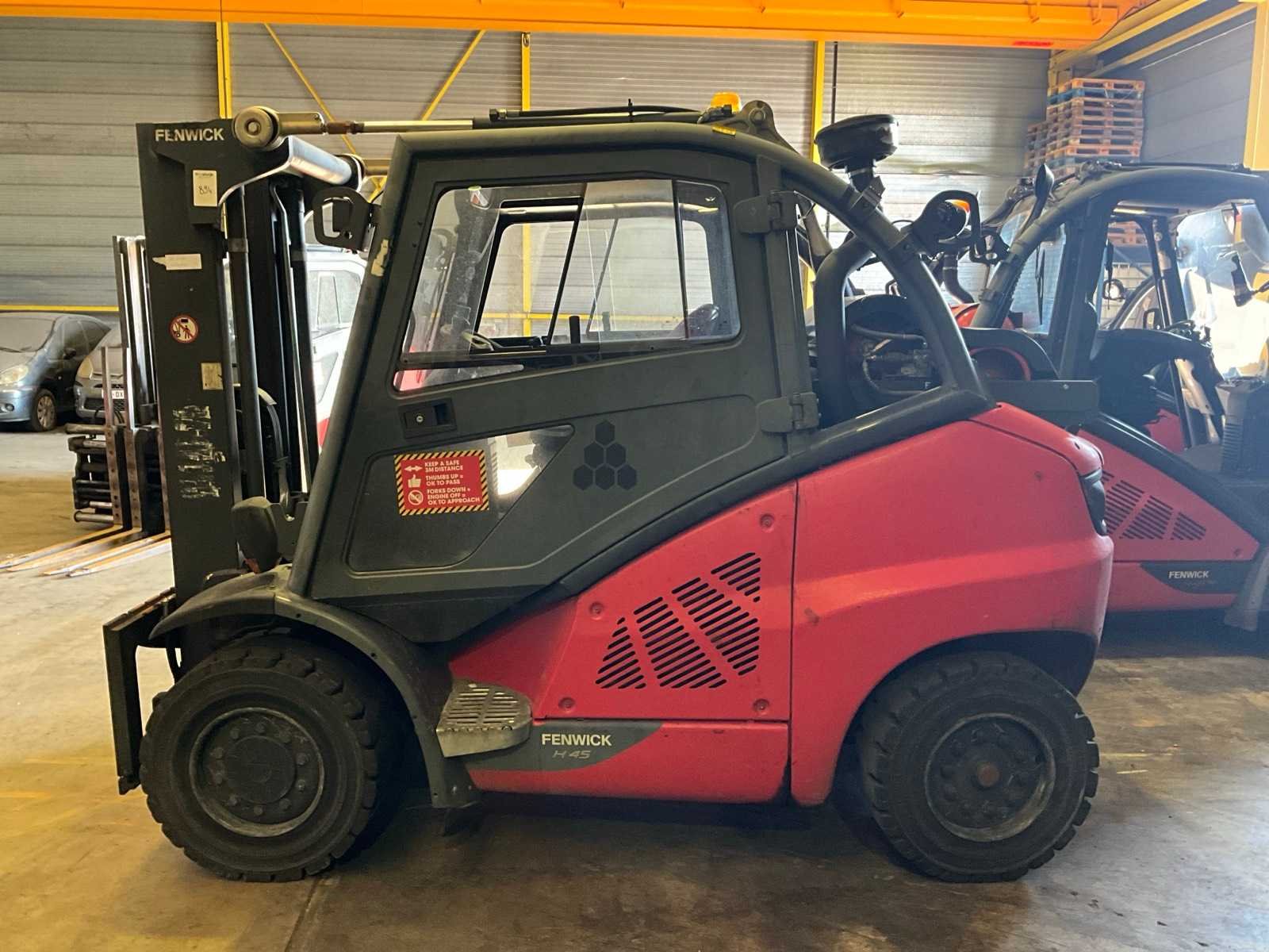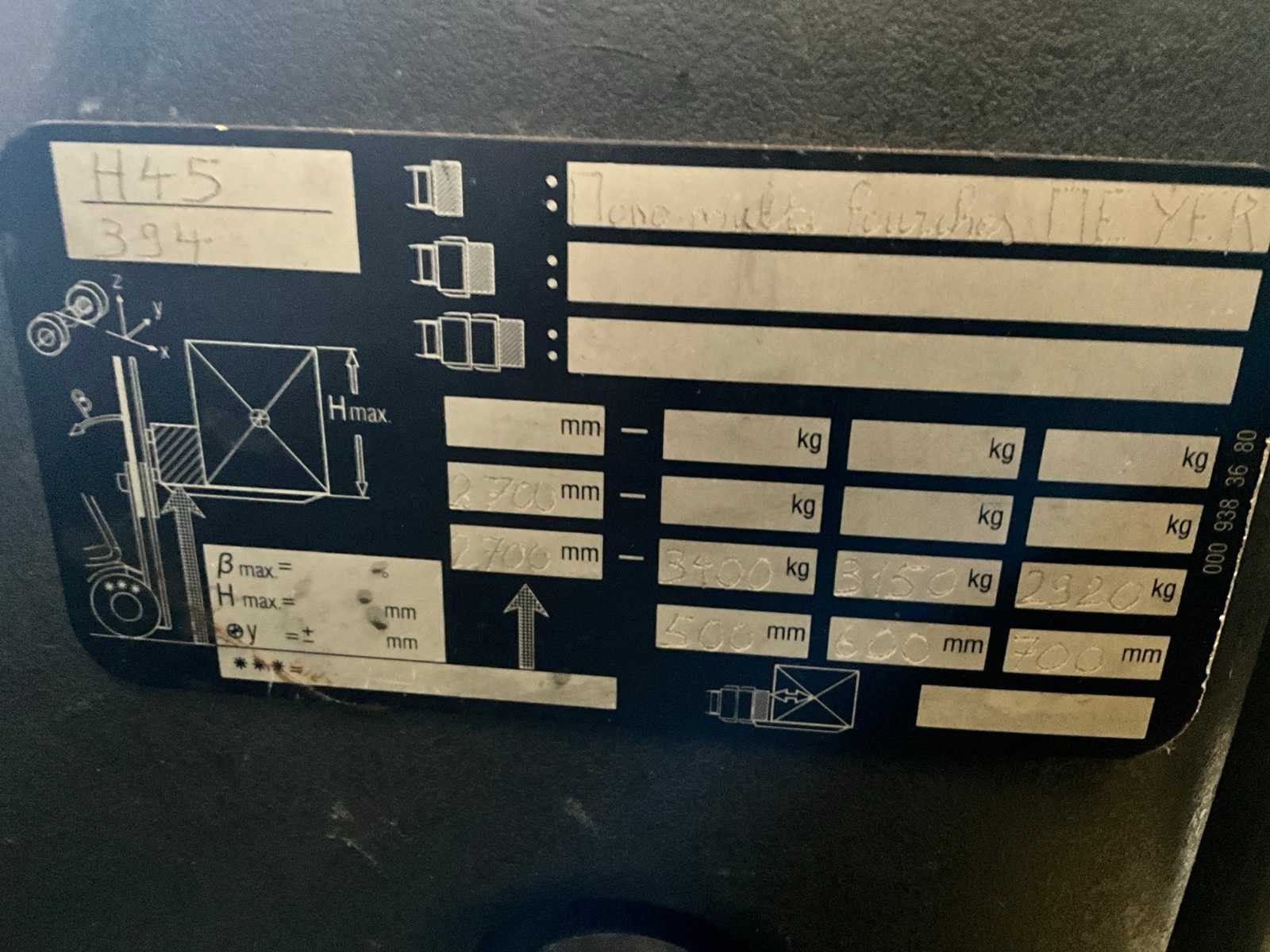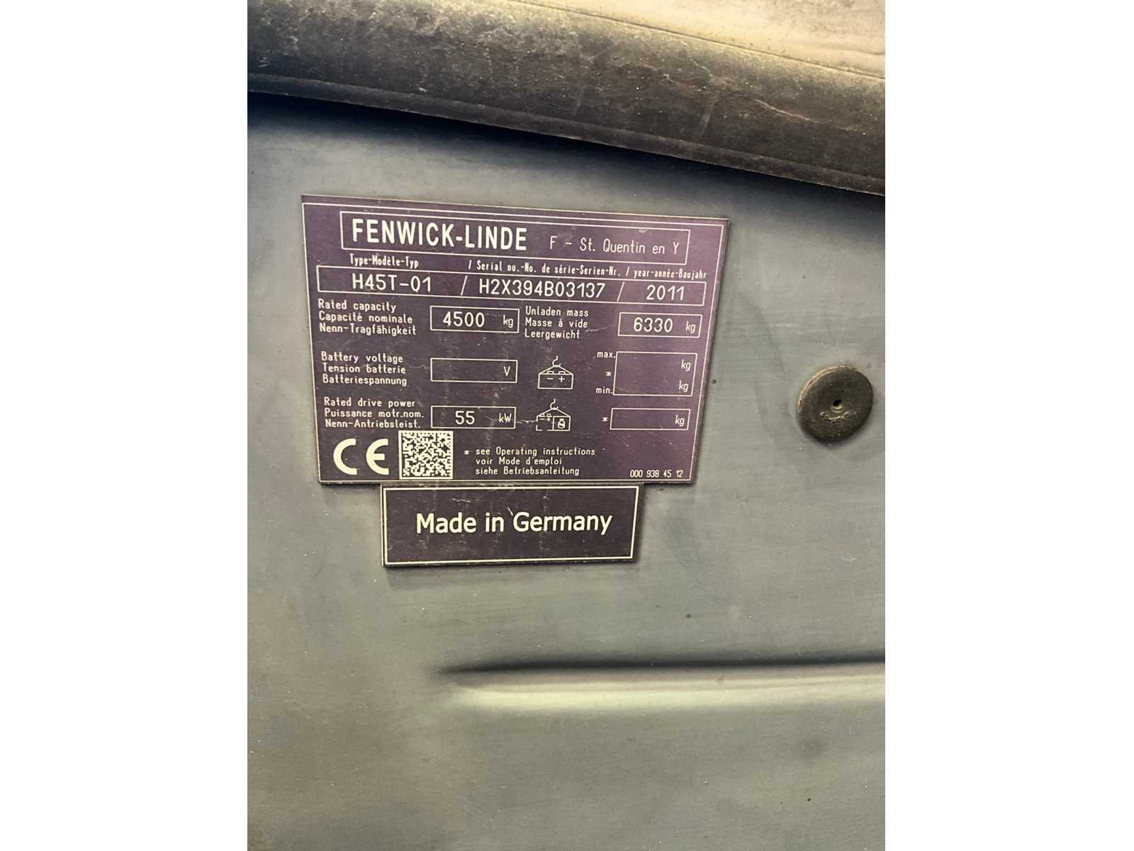 Voorzien van 2x navulbare lpg tank, gesloten cabine, hydrostaat aandrijving, derde en vierde hydraulisch ventiel op vorkenbord, opstartcode 011234 Merk: Linde Type: H45T-01 Bouwjaar: 2011 Serienummer: H2X394B03137 Brandstof: LPG Soort band: Volrubber banden Aantal wielen: 4 Afgelezen urenstand: 16132 Free-lift: true Duplex mast: true Eigen gewicht: 6330kg Hefvermogen: 4500kg Lepellengte: 1150mm Hefhoogte: 2760mm Vol rubber banden: true Minimale doorrijhoogte: 2200mm Totale afmeting L: 3100mm Totale afmeting Breedte: 1400mm Totale afmeting Hoogte: 2200mm LPG: true