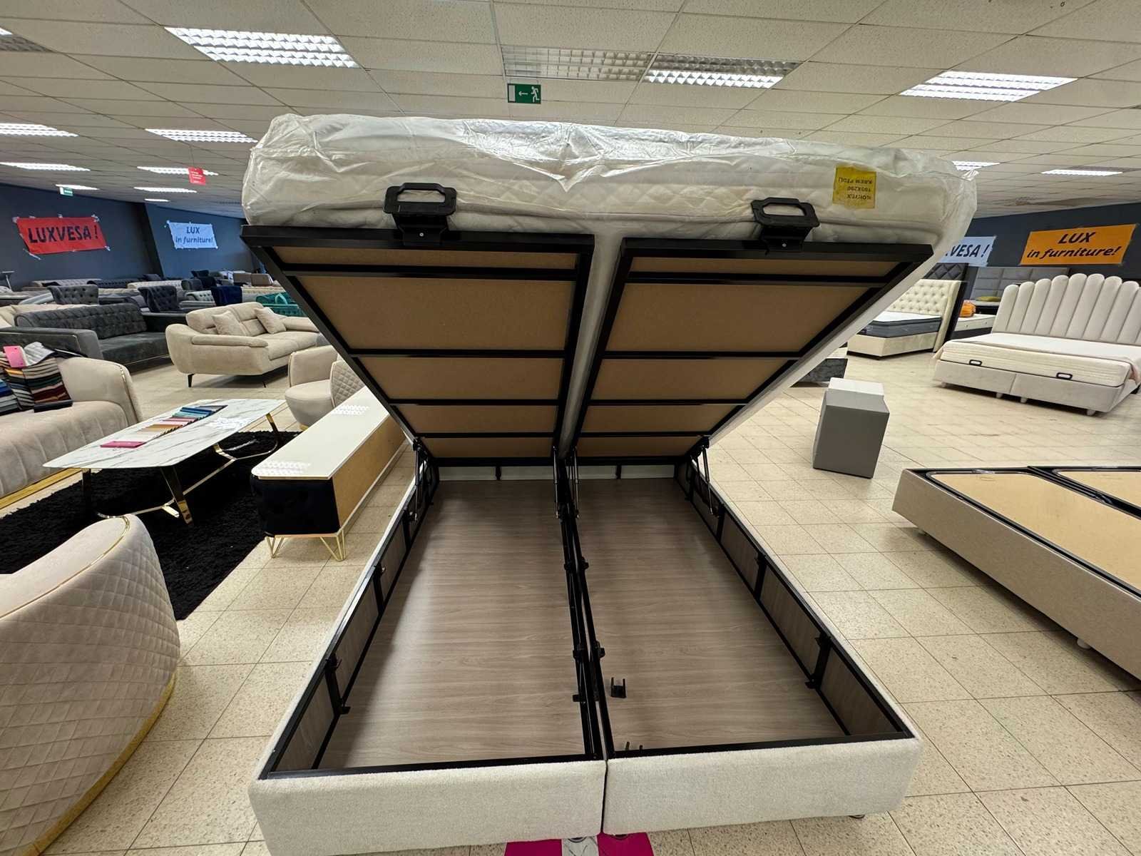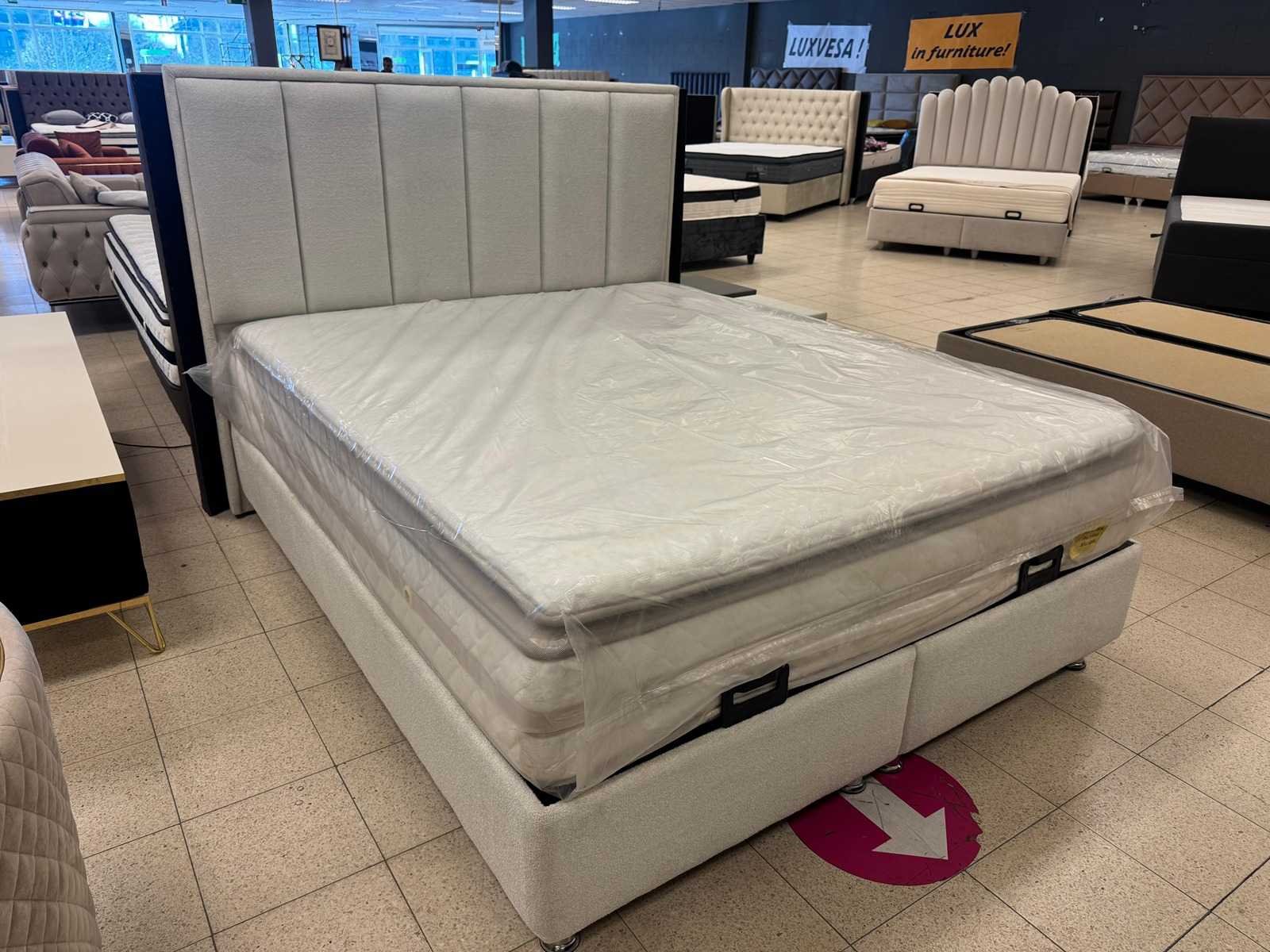 Boxspring tera afmeting L: 160 cm; B: 200 cm; bestaande uit: Hoofdbord, boxen met opbergruimte, Luxe matras met veringen inclusief ; kleur:wit stof; staat: showroommodel