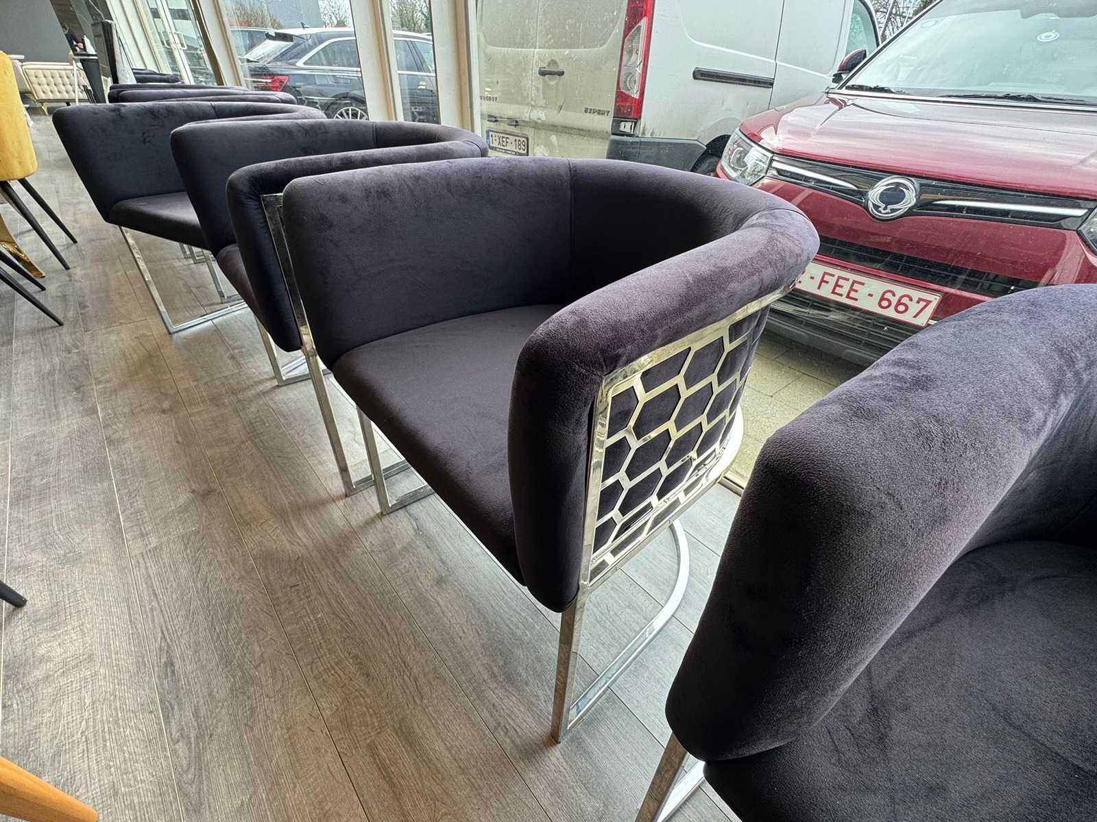 Eetkamerstoel Honey; afmeting H: 80cm L: 42 cm, B: 50 cm; stoel kleur: zwart; poten: zilver ; staat: showroom model.