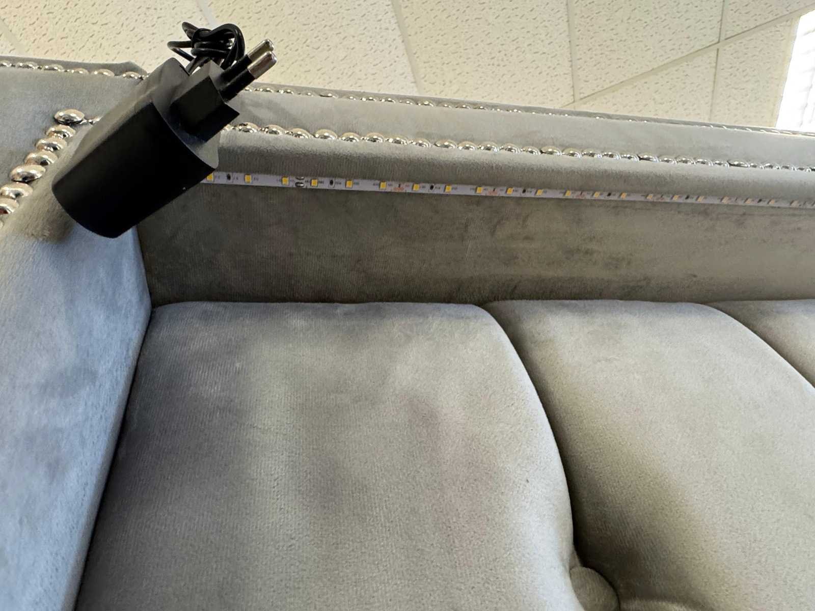 Type: escape met led verlichting afmeting L: 180 cm; B: 200 cm; kleur: grijs stof; staat: showroom model