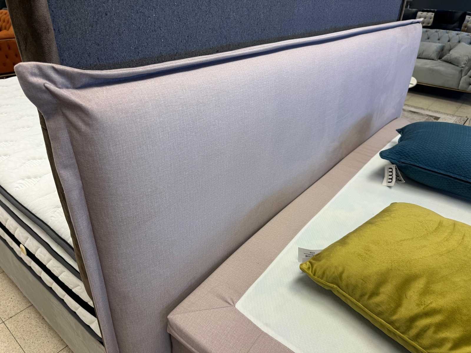 Hoofdbord, 2x pocket veren box, luxuese gestoffeerde pocketveren matras en gestoffeerd topper kleur: roos stof; staat: showroom model