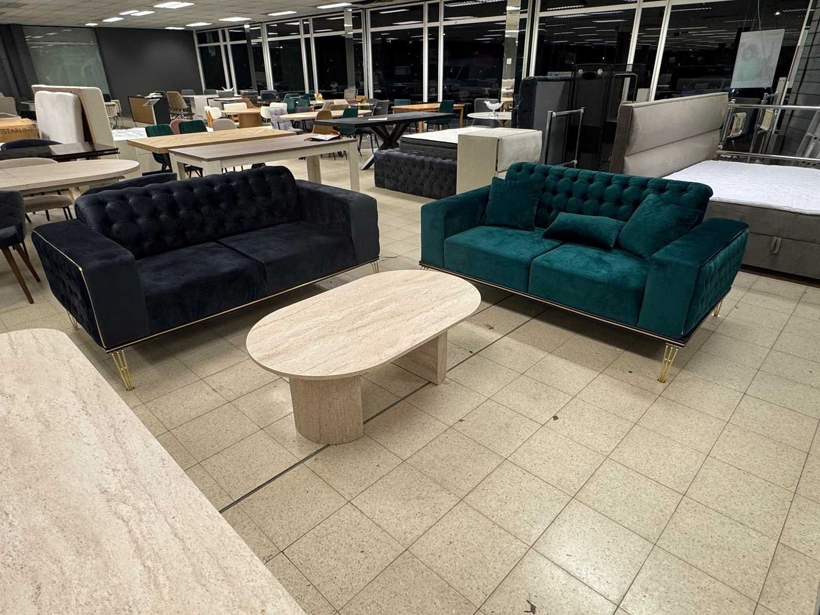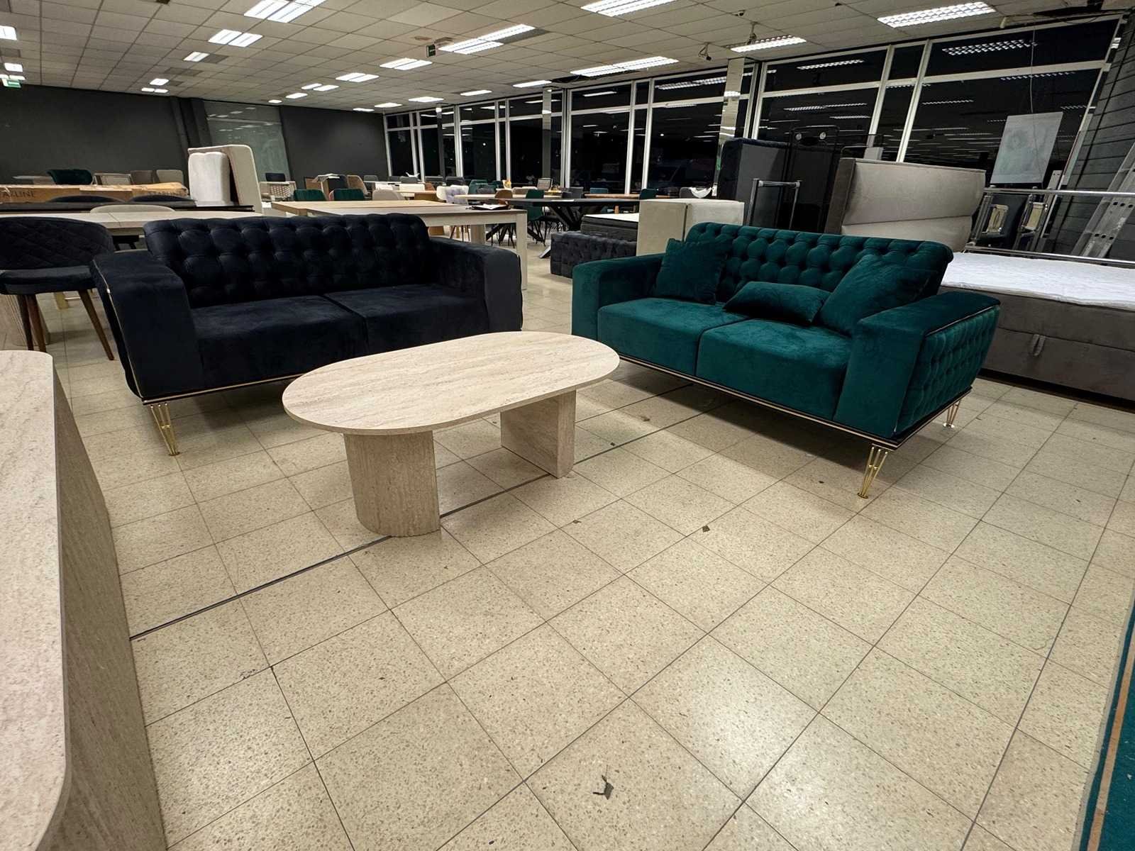 Salon Lyon 2 zit 180cm, 2 zit 180cm kleur: antraciet, groen stof; staat: showroom model